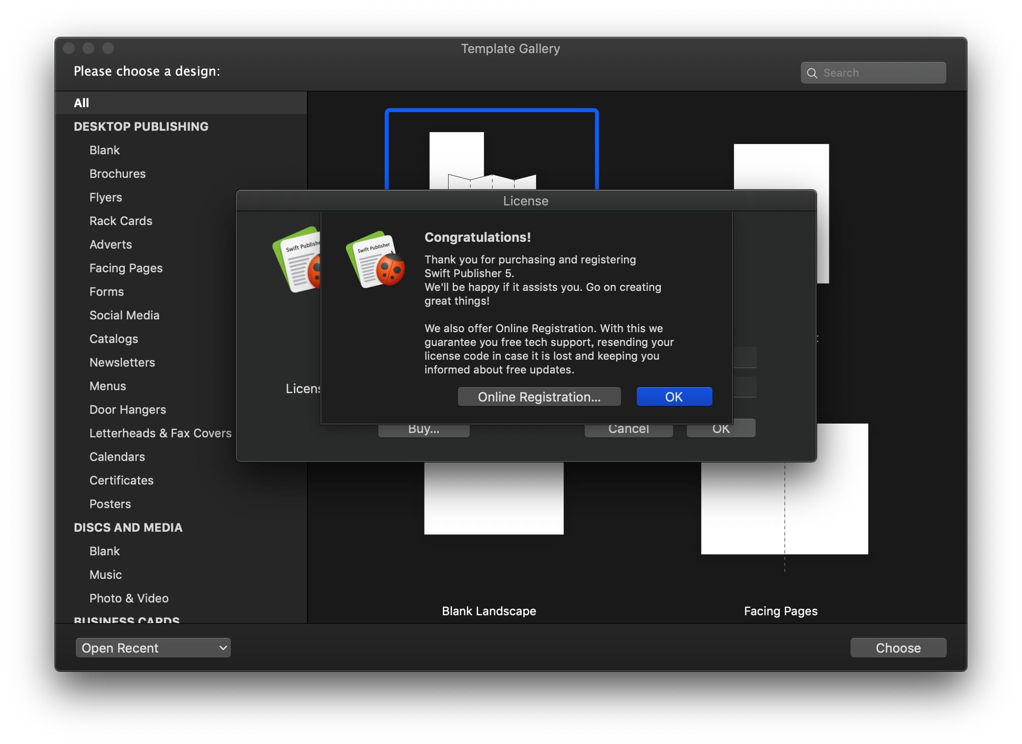 Swift Publisher for Mac包含300多种预先设计的各种文档类型的模板。你可以找到双折页、三折页,菜单等许多模板。其他的免费模板也可用的。