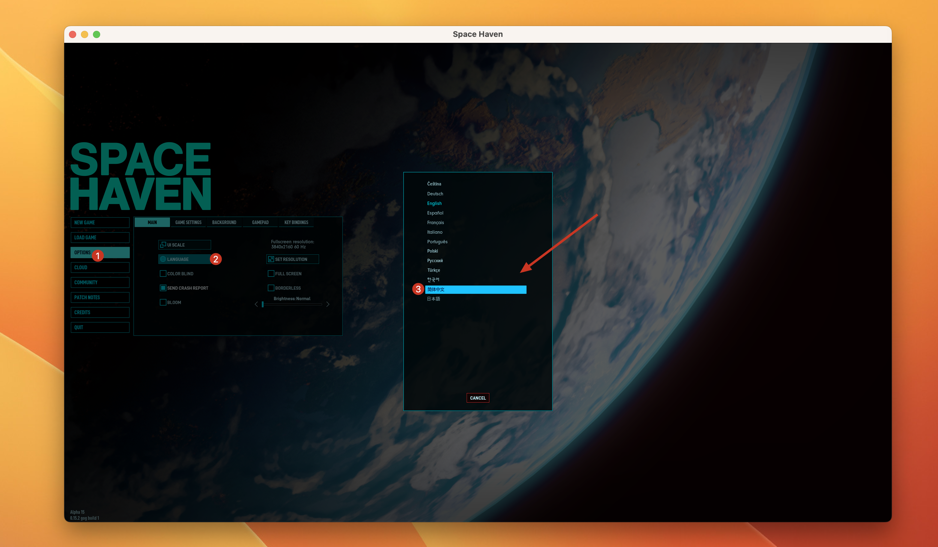 2.在【language】找到简体中文,点击设置即可,设置完成后需要重启游戏才能生效