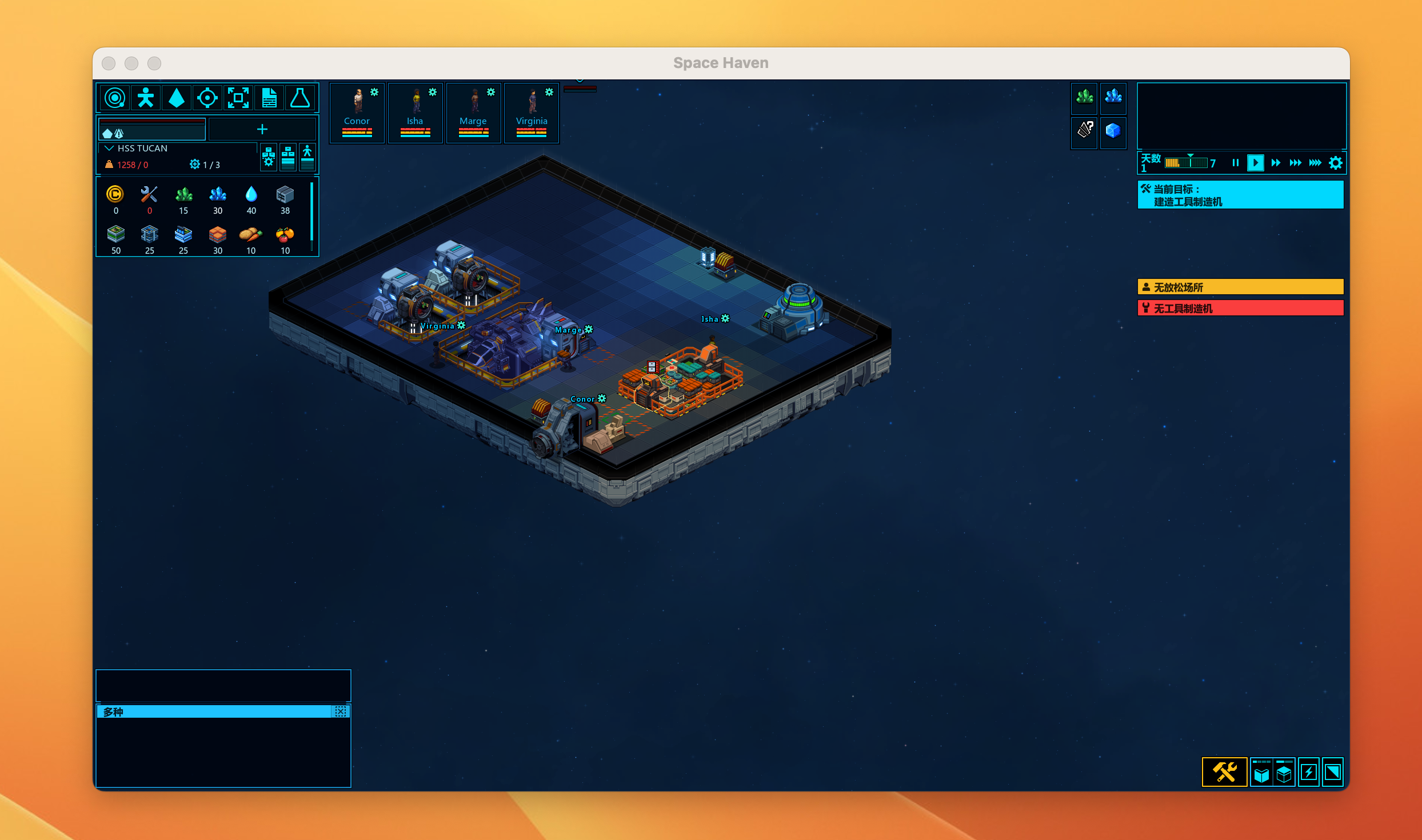 在《Space Haven》中,角色并非简单的机器人。这款游戏模拟了船员的需求、情绪、健康状况和技能,而且他们彼此会建立关系。以往的职业和爱好会影响他们的技能和诀窍,而且他们还具有积极和消极的性格特质。你将在寻找新家园的持续旅程中,见证不同船员的欢乐时刻、沮丧情绪和戏剧性事件。