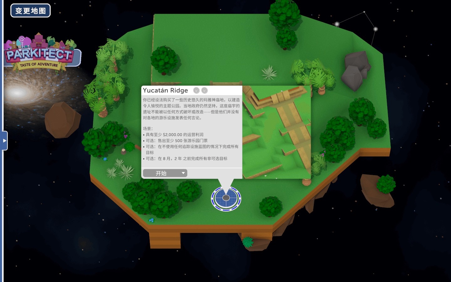 欢迎进入 Parkitect,在这里您可以建造和管理您梦想中的主题公园。
