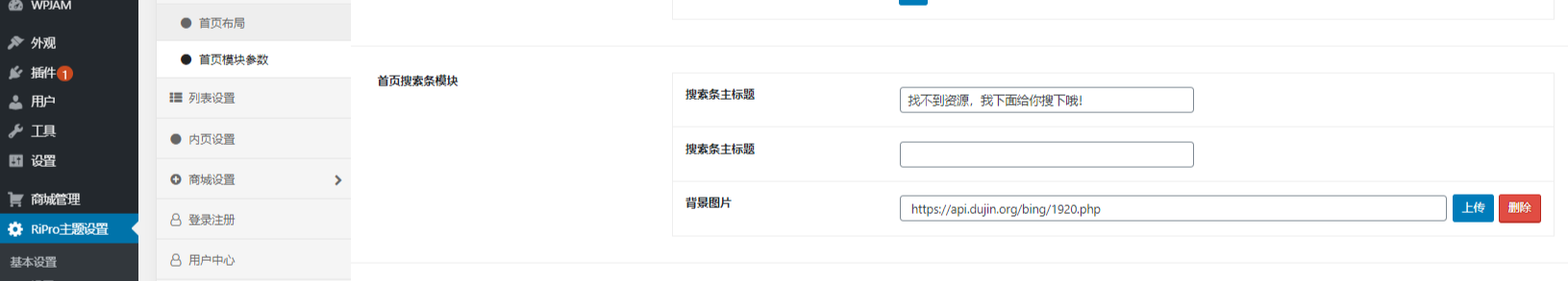 RIPRO修改-搜索框动态背景,去掉死板的单一图像 ,改用BING的api每日更新图片,使用的是缙哥哥博客的api
