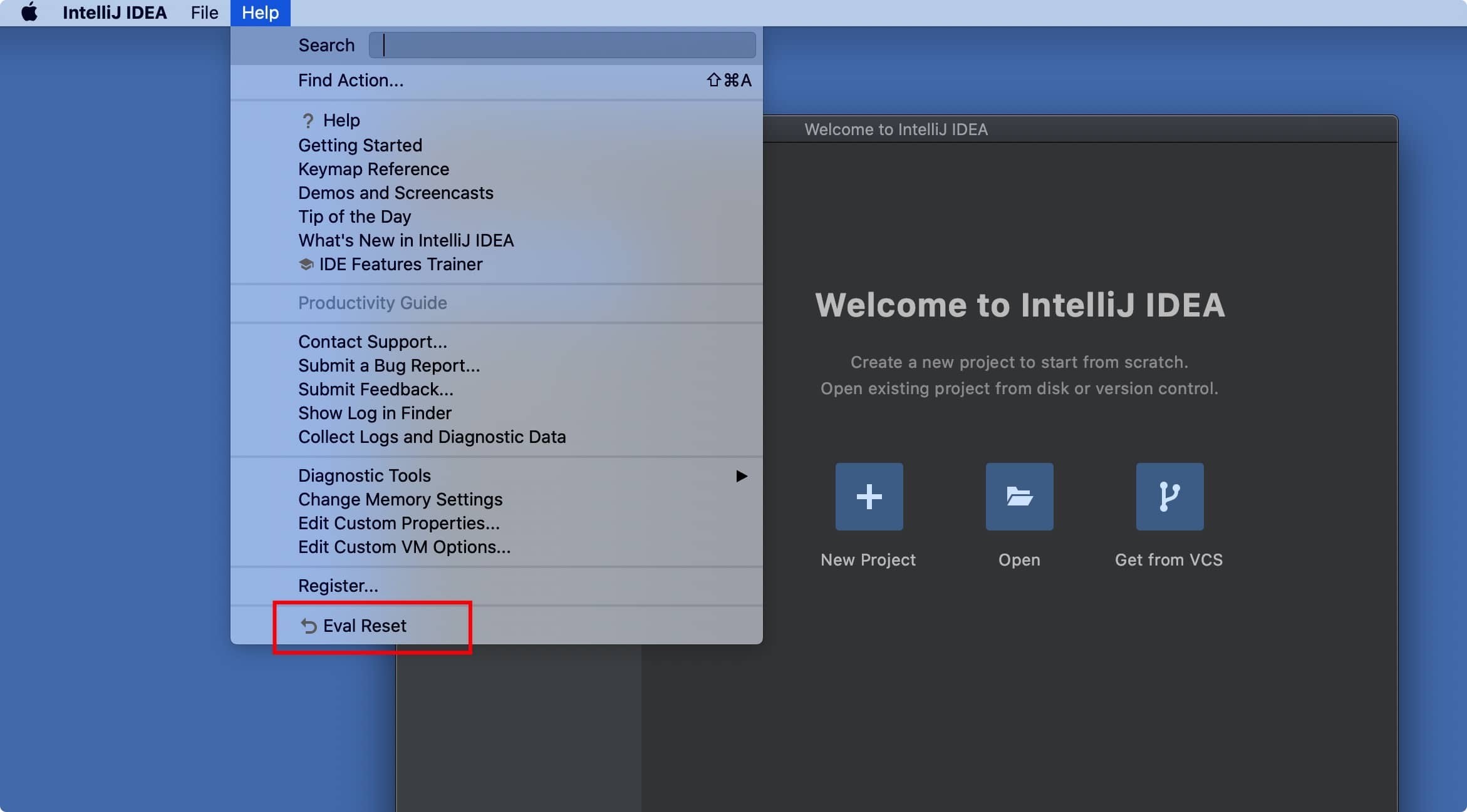3、安装完成后,就可以在菜单栏,Get Help -> Eval Reset,进行重置试用。