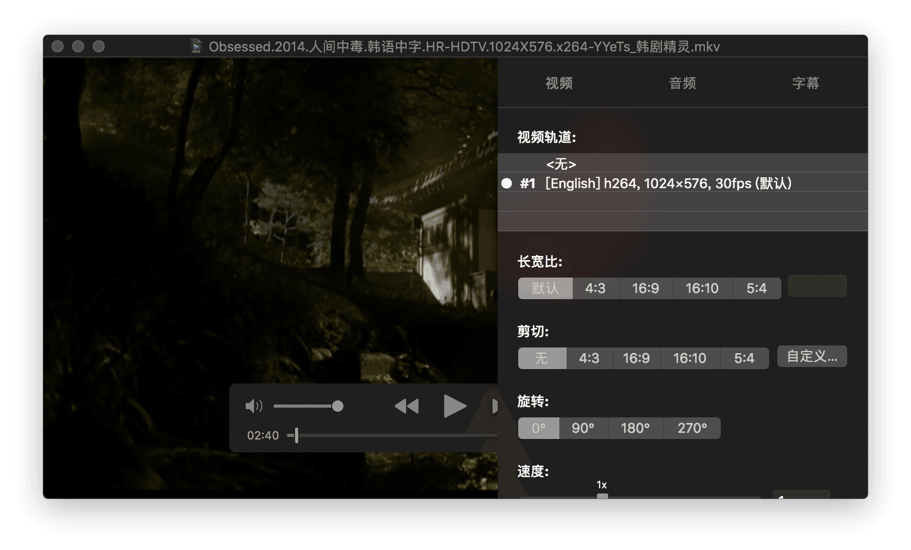 IINA 分享了和大多数其他播放器一样,甚至更丰富的菜单选项。功能上可以支持视频截图、支持外挂字幕、支持网络自动下载字幕( Shift+Cmd+D ,或菜单中「字幕-查找在线字幕」)、支持播放列表和章节、支持画面去黑边等;设置上分享各种视频、音频、字幕设置,支持自定义鼠标和快捷键操作,设置项非常丰富!