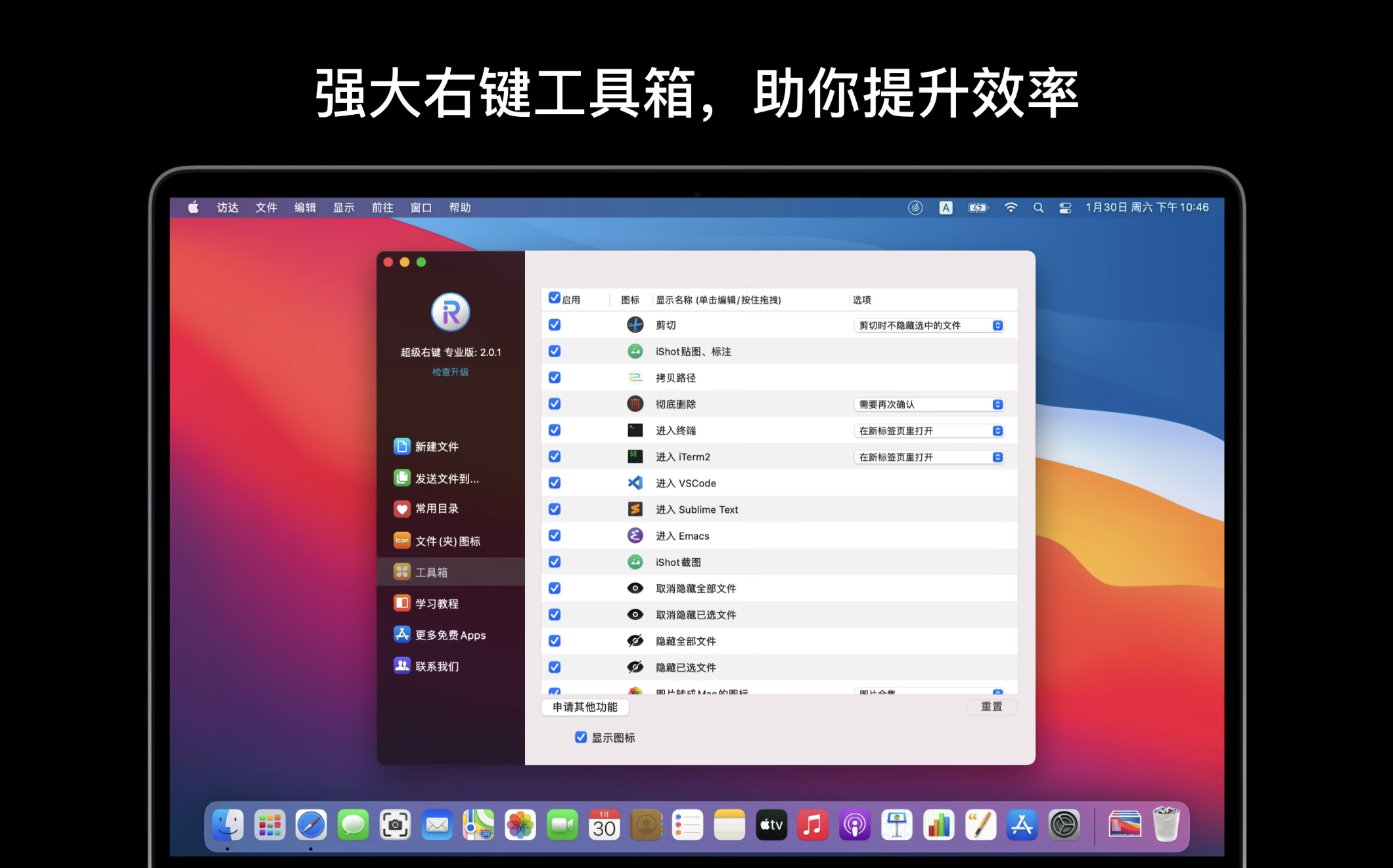 超级右键是Mac上最强大的右键菜单工具,丰富的功能,让你的右键菜单如虎添翼,深入人心的交互设计,助你大幅提升macOS使用体验!