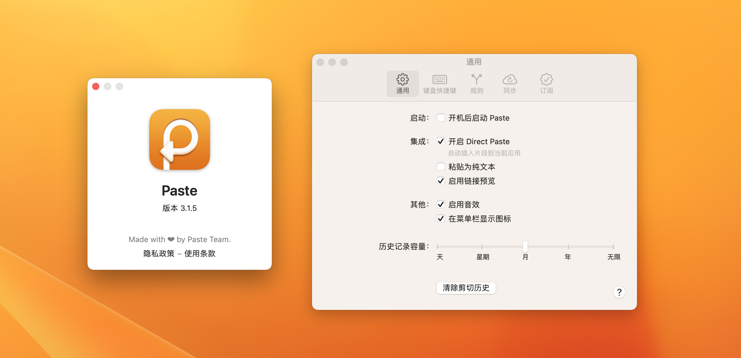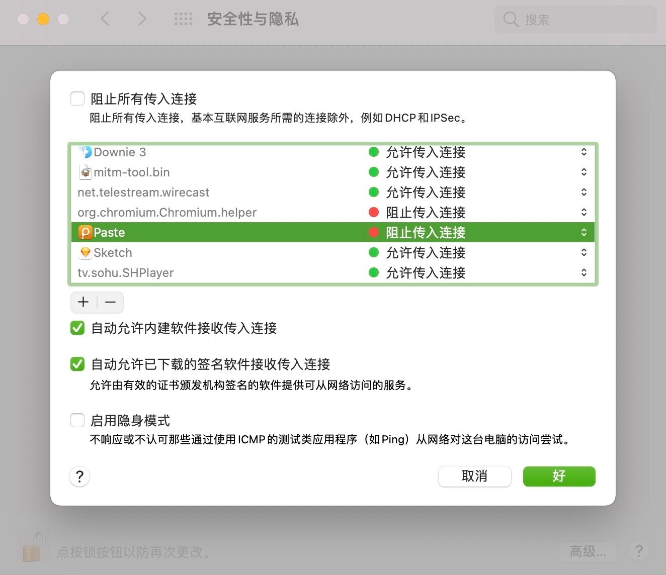 温馨提示:不要勾选iCloud 同步,安装后在偏好设置-防火墙里面禁止Paste 网络传输