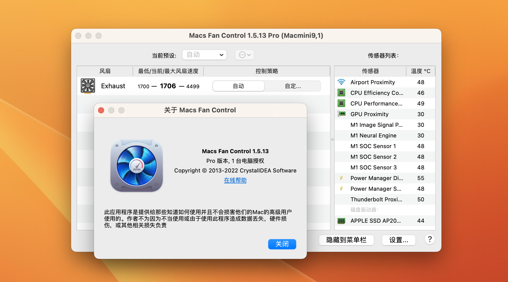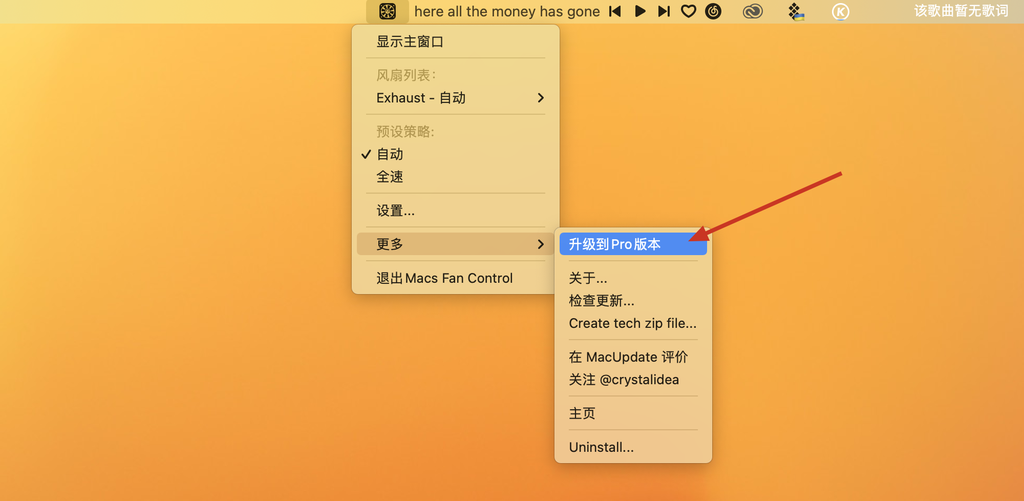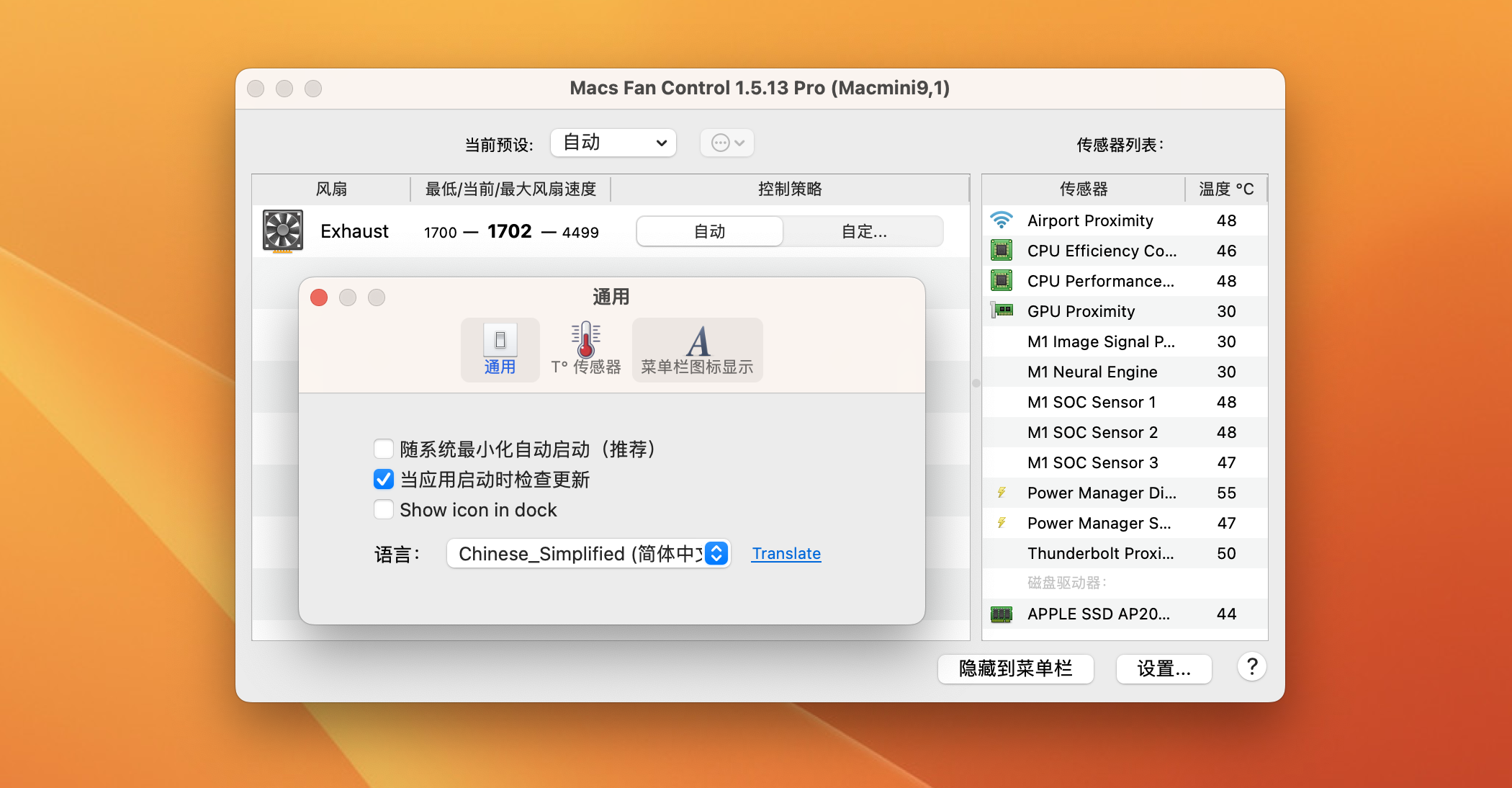 Macs Fan Control Pro mac版是Macos上一款电脑风扇控制软件,可以帮你解决mac风扇噪音问题,解决mac发热问题,而且支持自定义风扇转速策略设置 。可以设置在菜单栏实时显示风扇转速以及指定的硬件温度,比如磁盘温度、CPU温度、电池传感模块温度、GPU显卡温度等等。