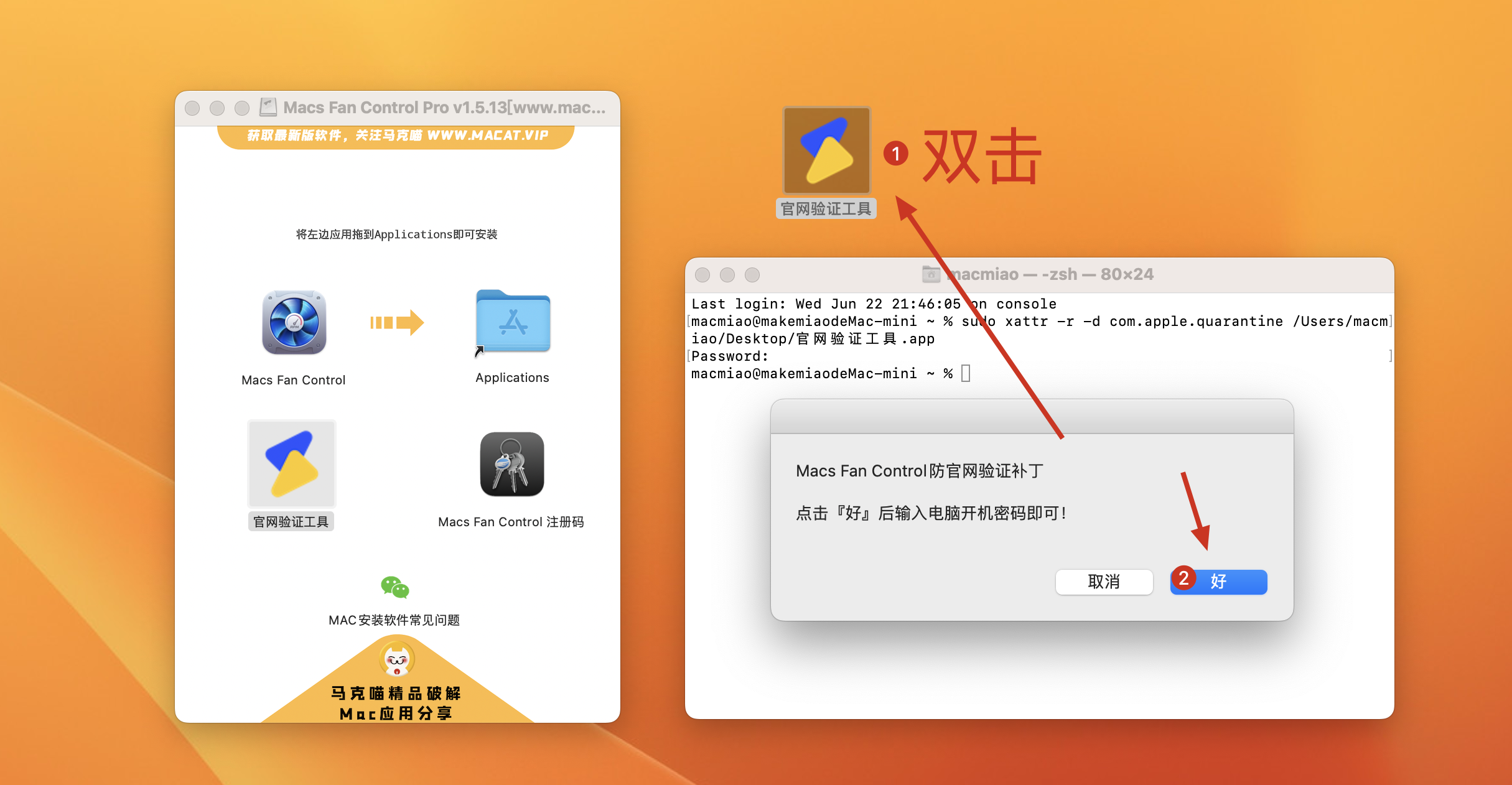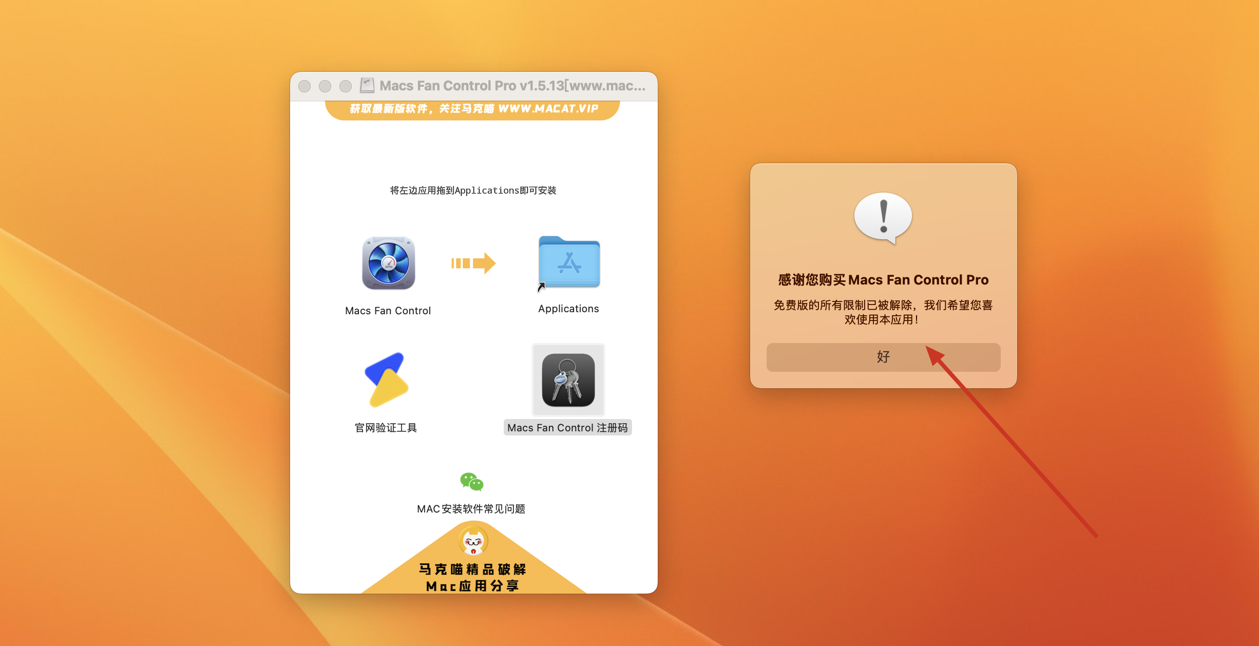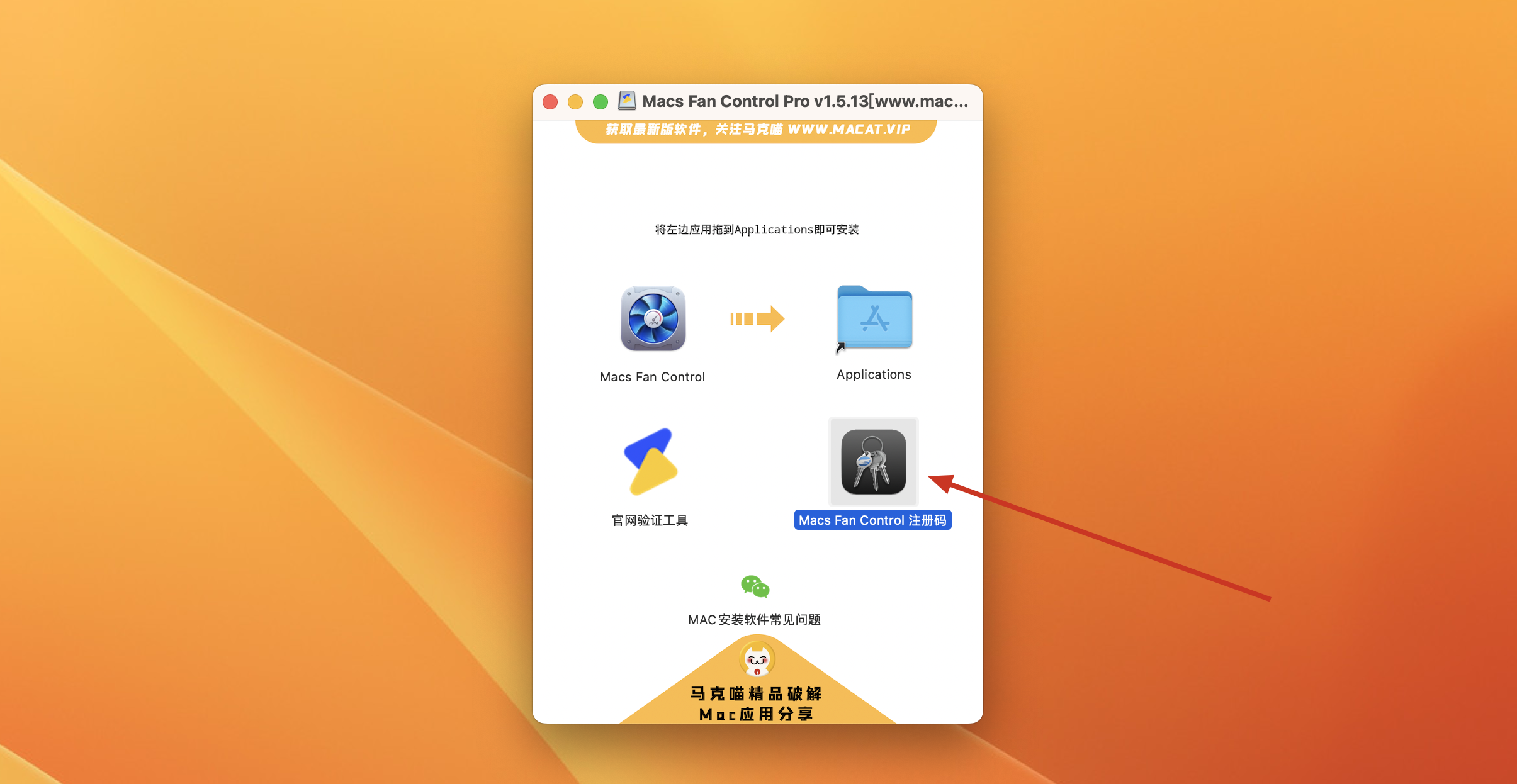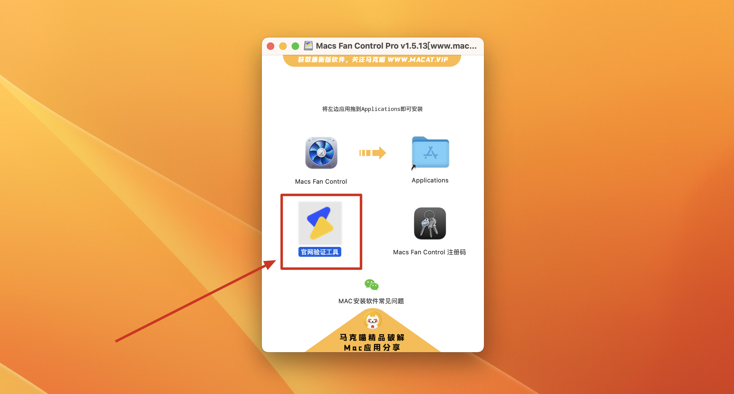 5.然后打开Macs Fan Control镜像包中的防官网验证工具,根据提示操作即可