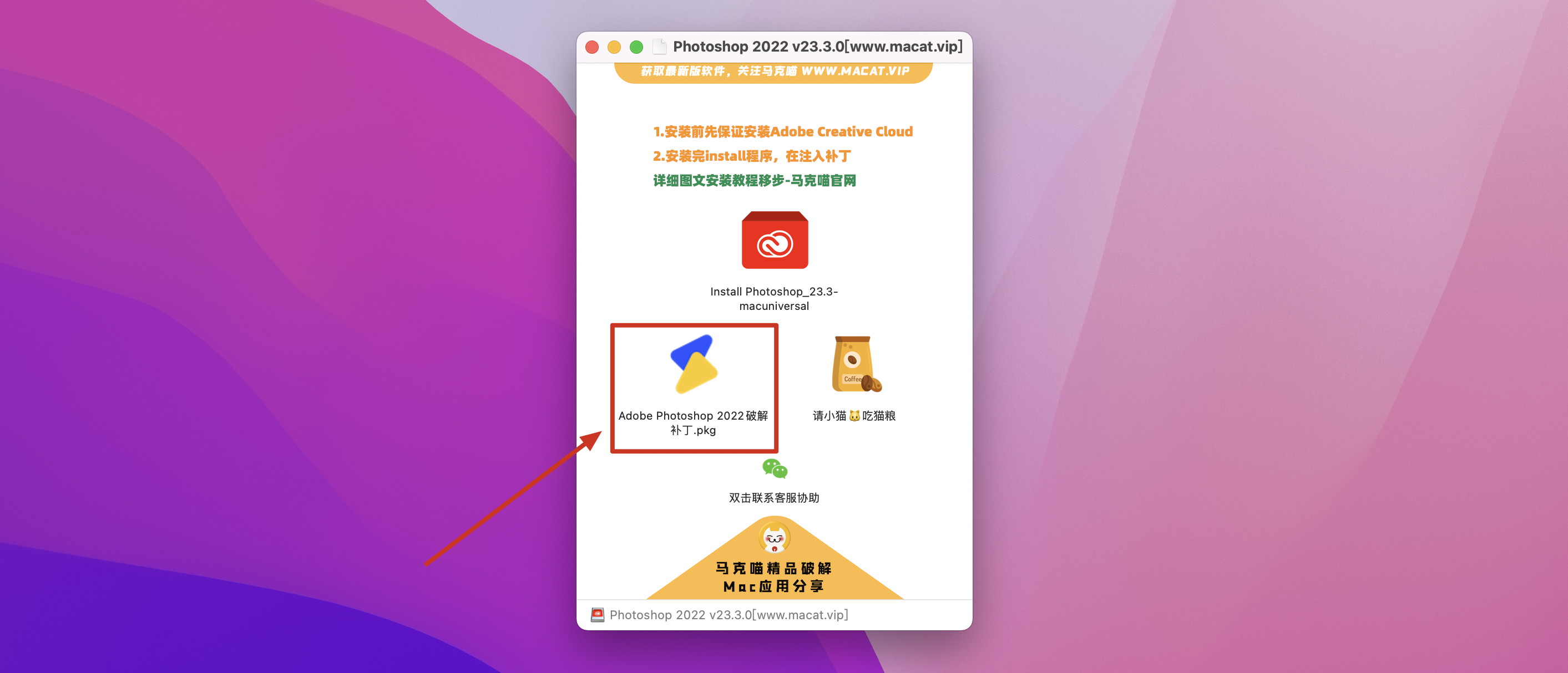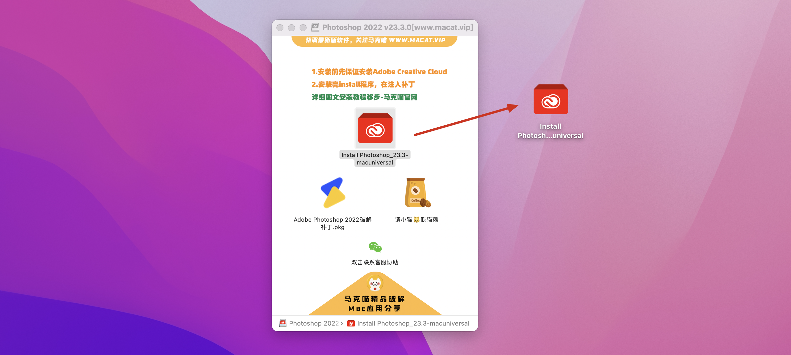 M1电脑请直接安装【 Creative Cloud】 下载正版,然后在替换补丁~https://www.zhishitu.com/6992.html