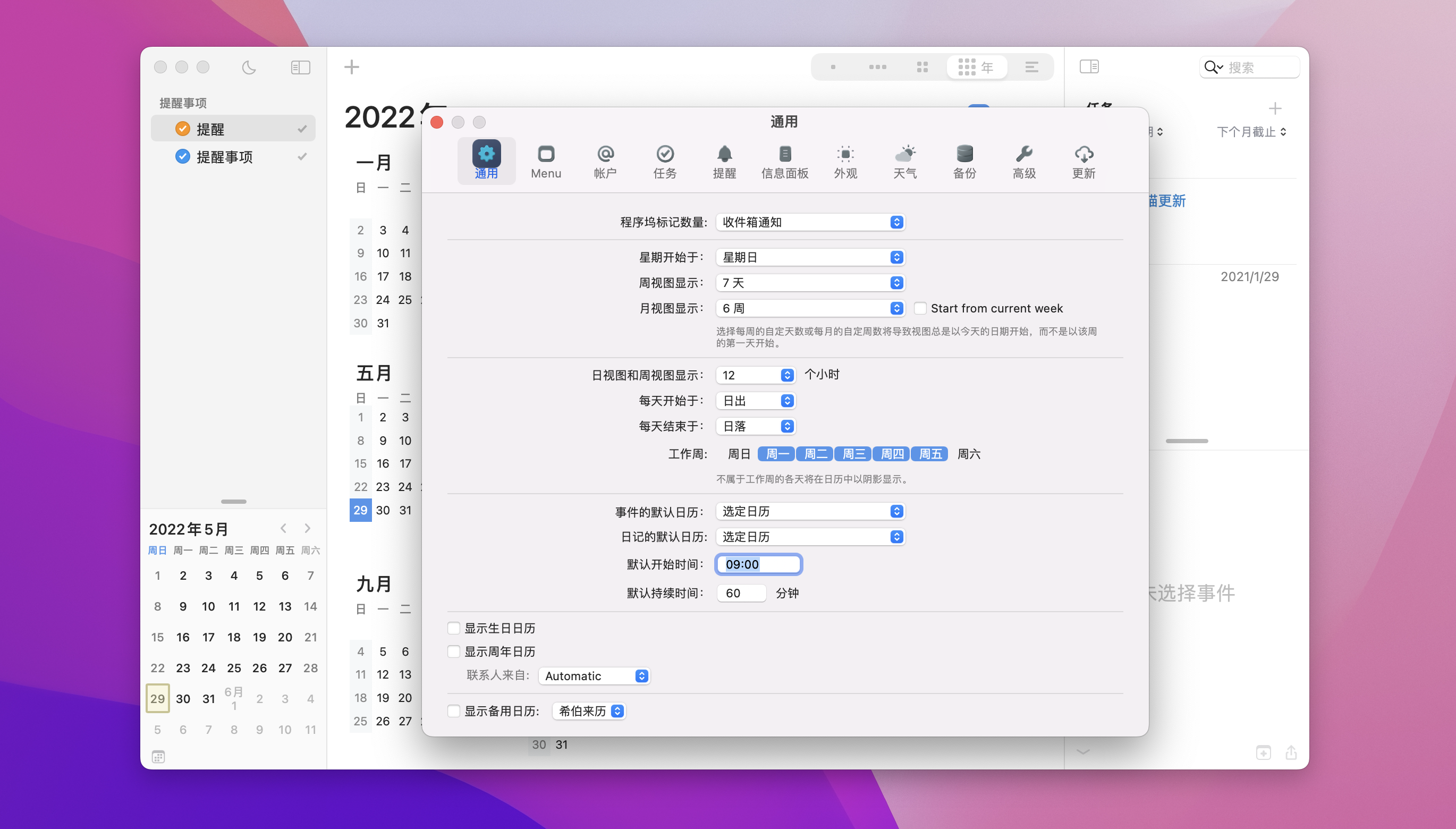 - BusyCal在左侧边栏中显示您的日历列表(以及可选的迷你月份)。