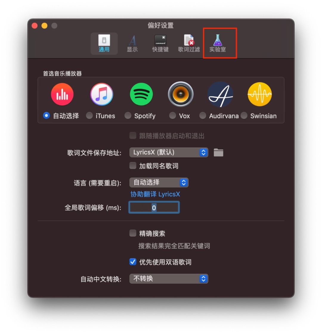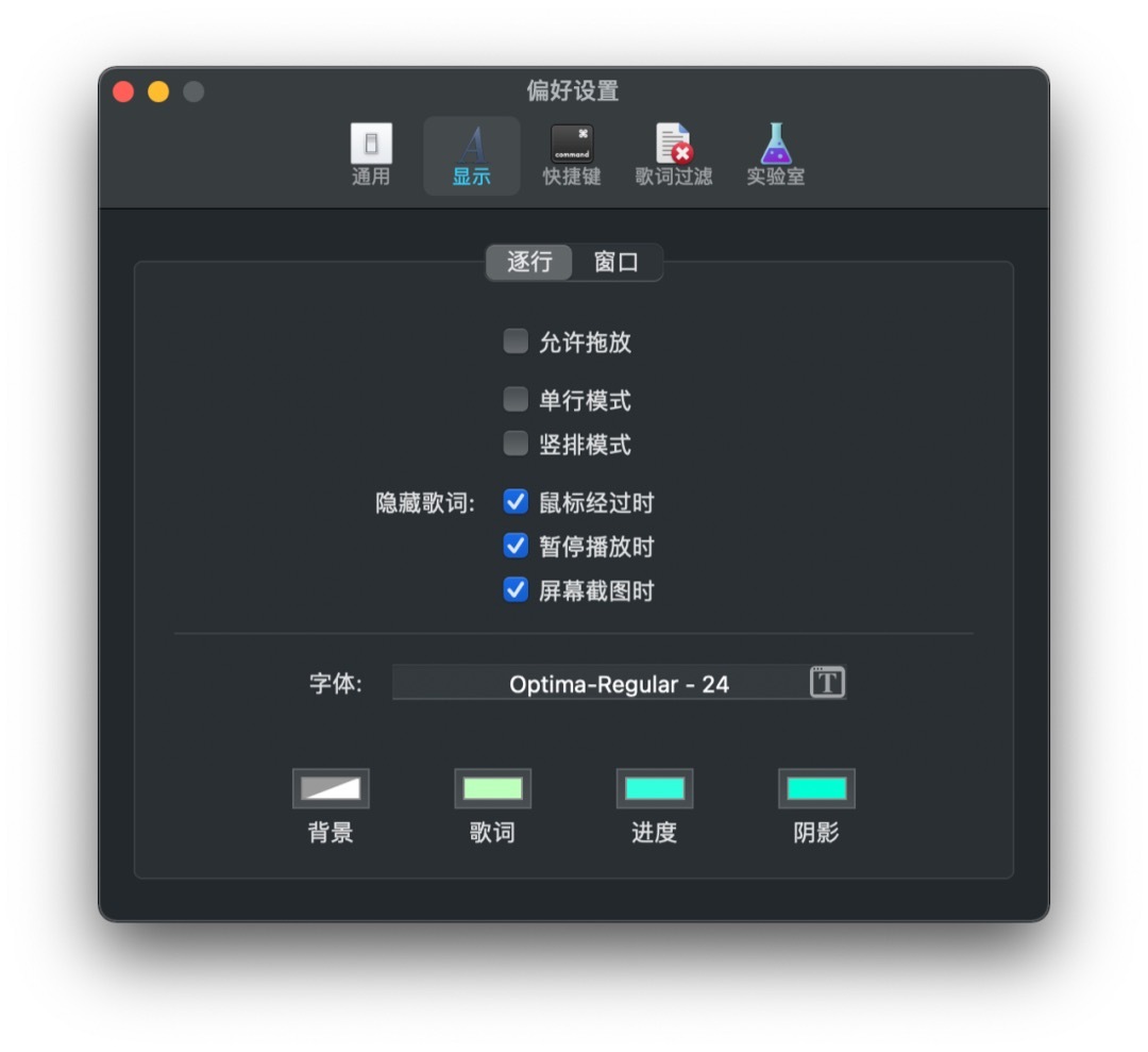 另外,在软件的偏好设置中,我们还能对歌词显示的模式进行更个性化的设置。