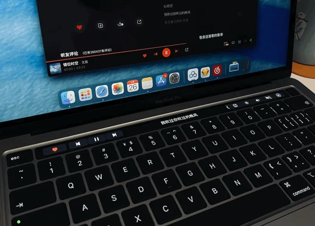 - 网易云软件打开时,歌词会正常显示在 Touch Bar 上