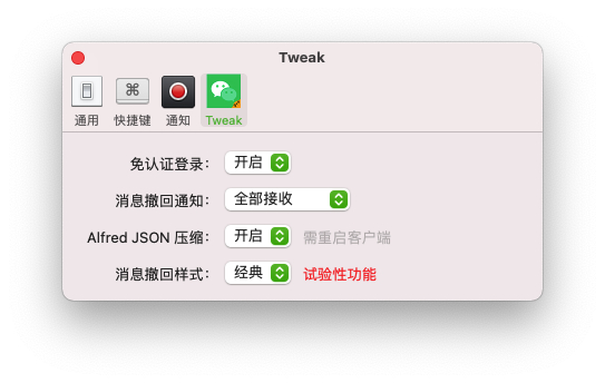 微信内置小助手Tweak稳定版,它能极大丰富你的mac版微信的功能,将官方没有的功能通过插件的形式实现。安装微信小助手后,在微信的偏好设置里可以看到各项功能。