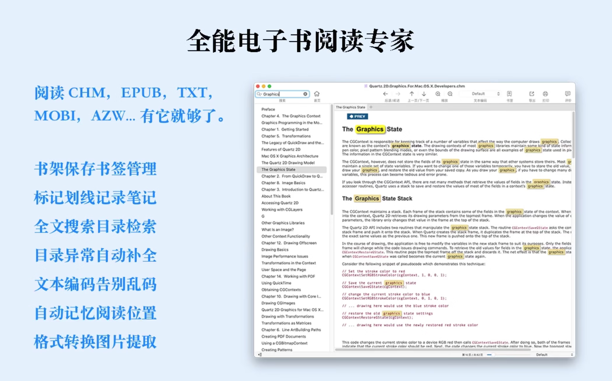 EPUB格式怎么打开?如何阅读EPUB格式文件?推荐这款GM EPUB Reader Pro for mac专业的电子书阅读器,支持EPUB、CHM、MOBI等文件格,界面简单美观,阅读体验良好。
