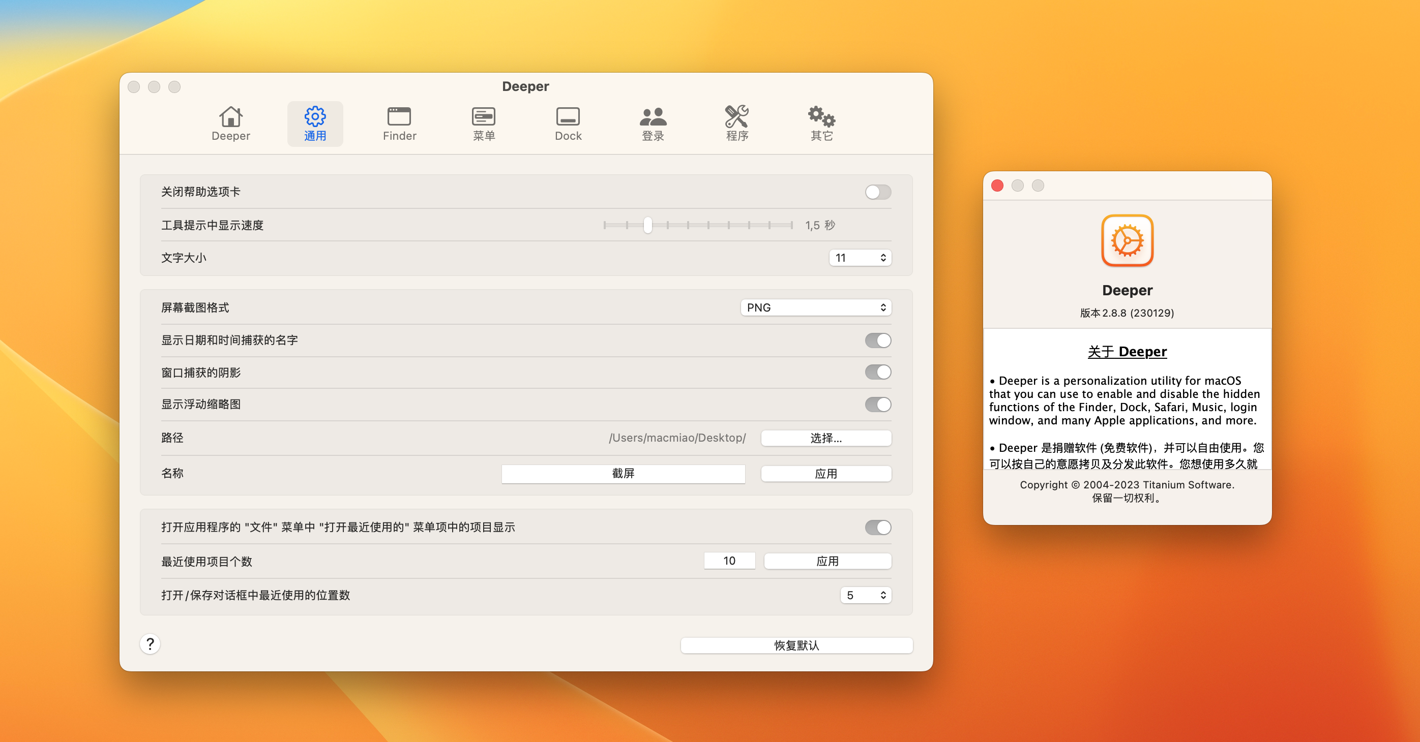 3.适用于初学者和高级用户的快速且用户友好的macOS隐藏功能切换器和系统行为定制应用程序