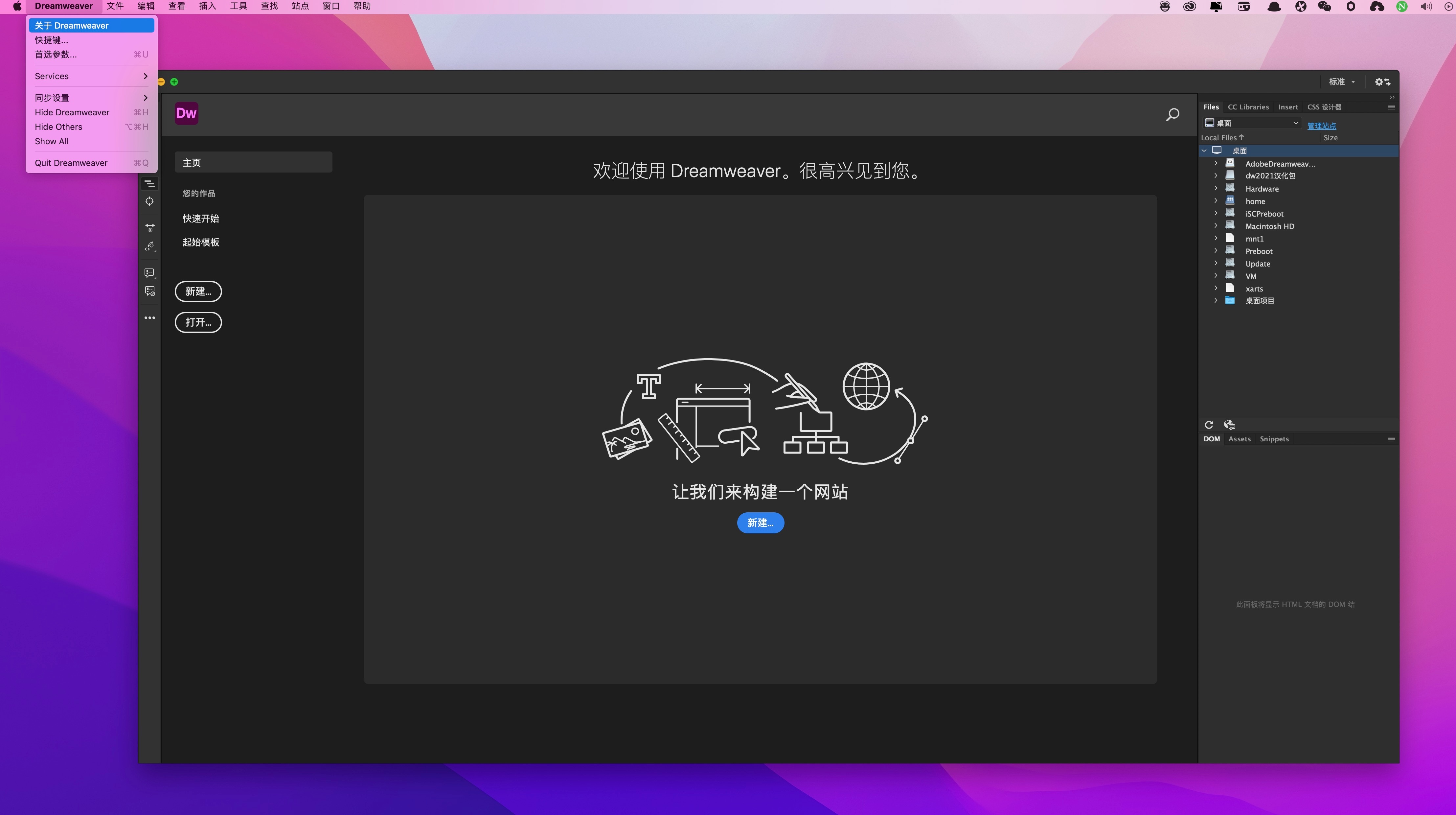 6.重新运行dw cc 2021 mac破解版即可汉化成功。