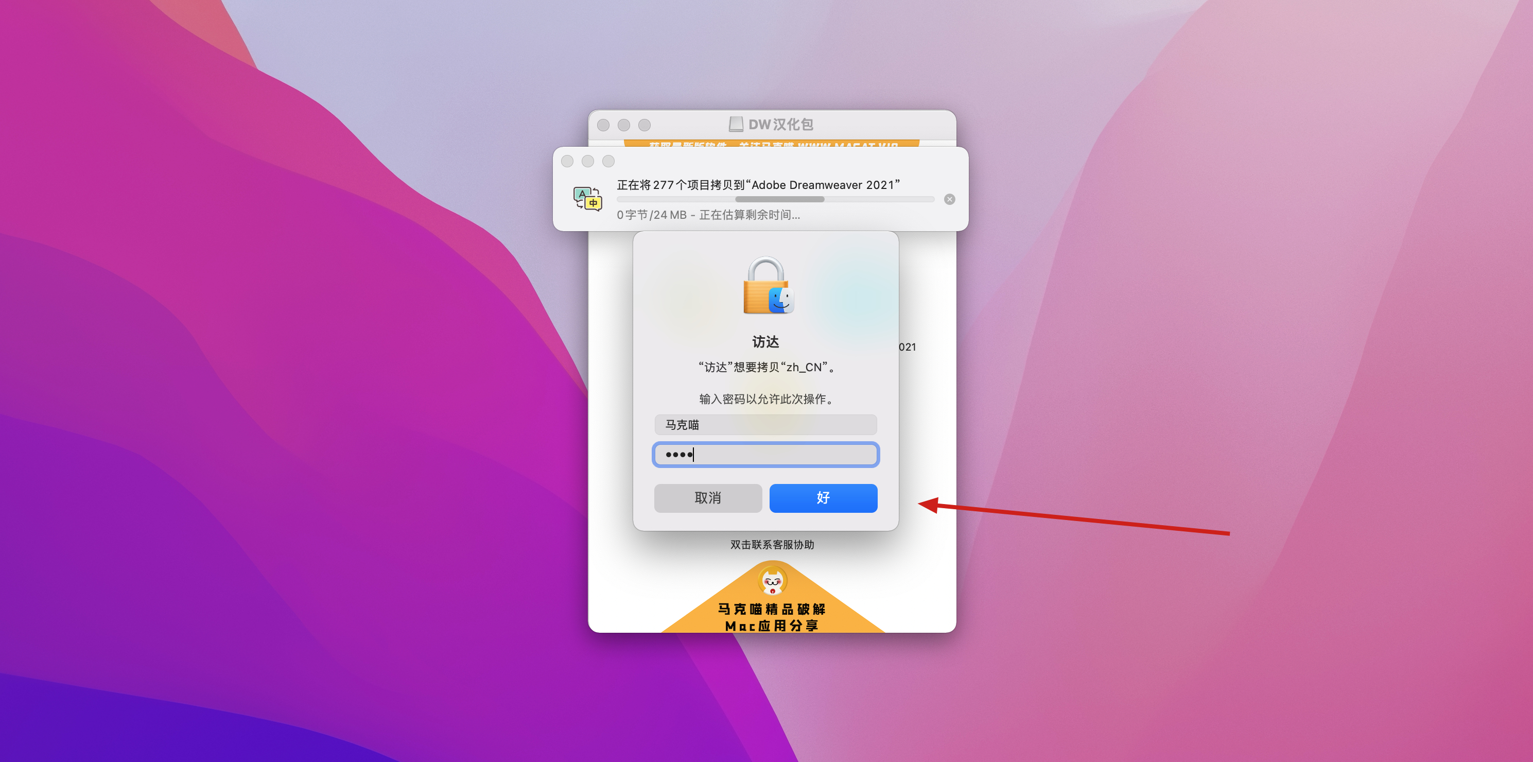 将Install安装文件拖到应用程序里,打开终端,执行下方命令,回车,输入密码回车(输入密码看不见)
