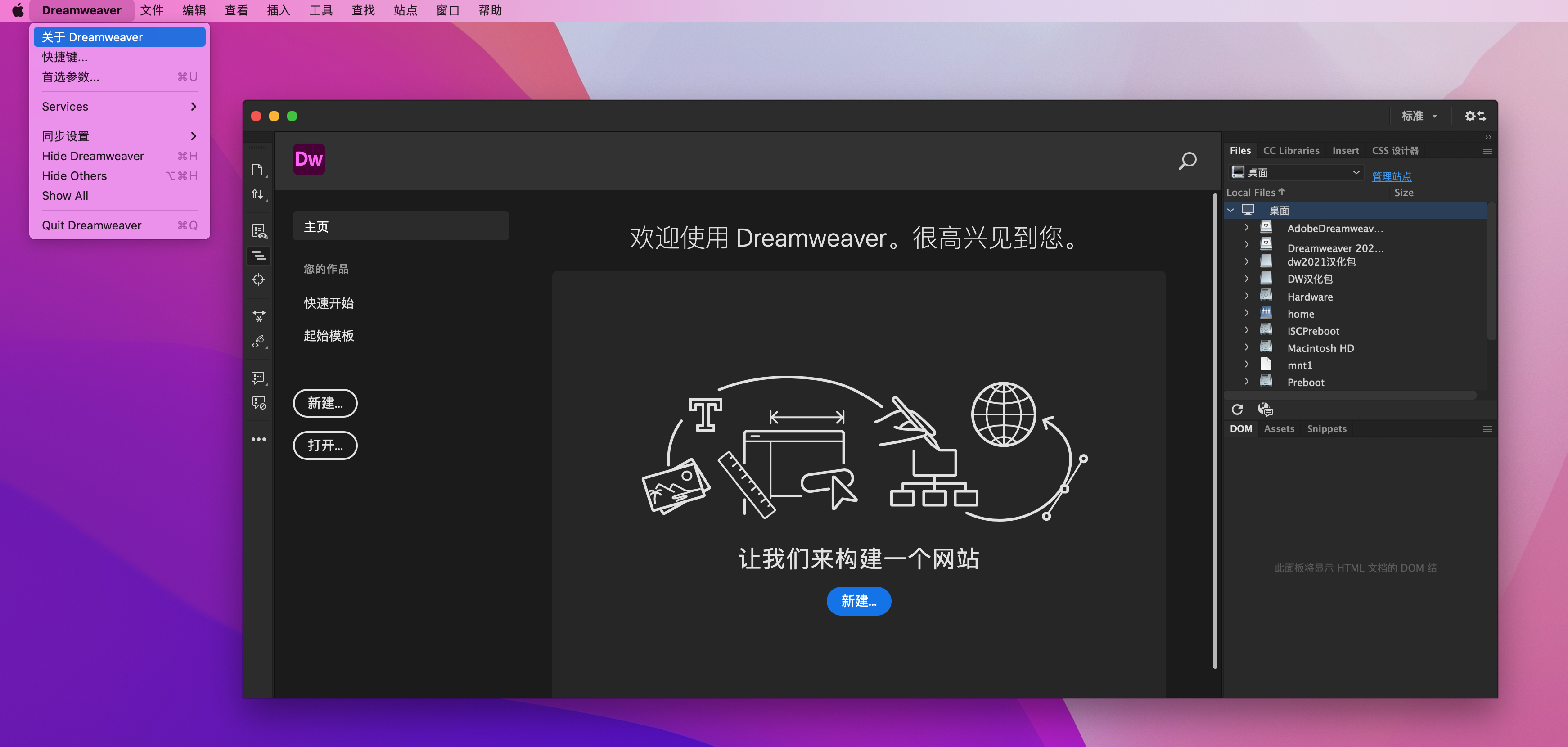 7.重新运行dw cc 2021 mac破解版即可汉化成功。