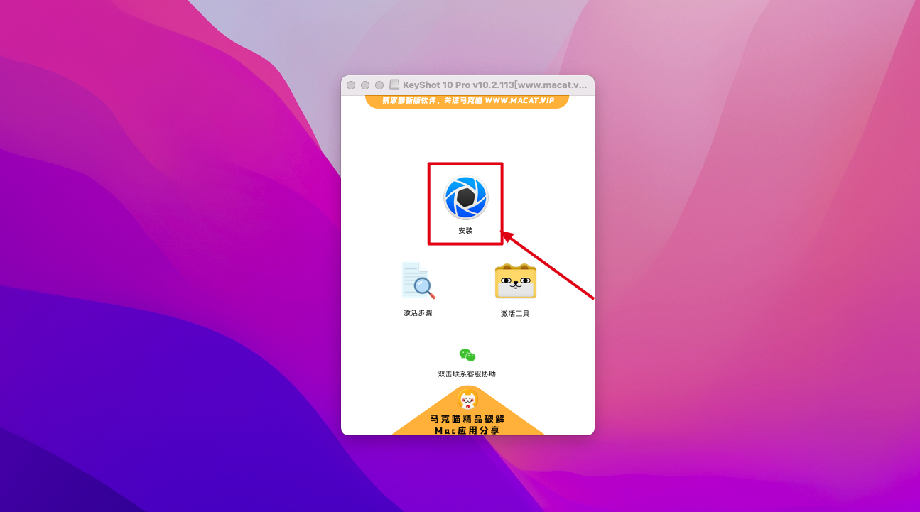 1.keyshot10下载完成后打开,双击【安装.pkg】,根据安装器引导默认安装即可。