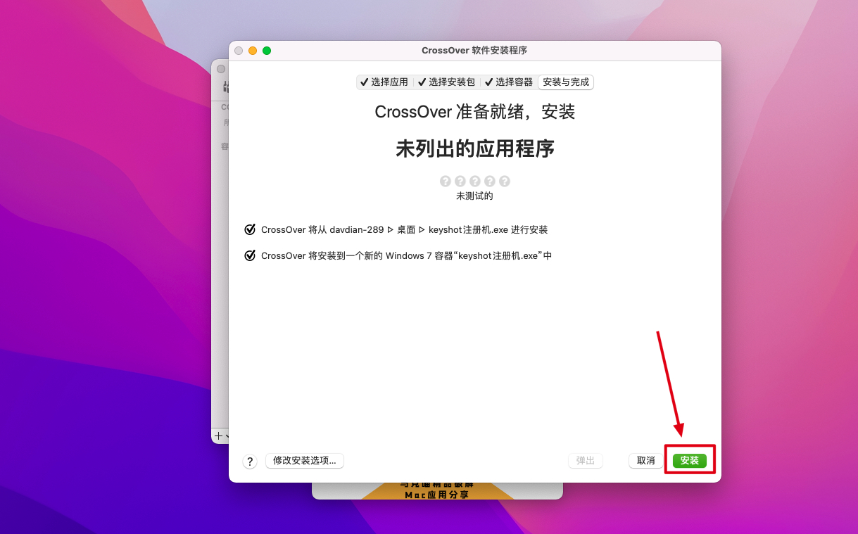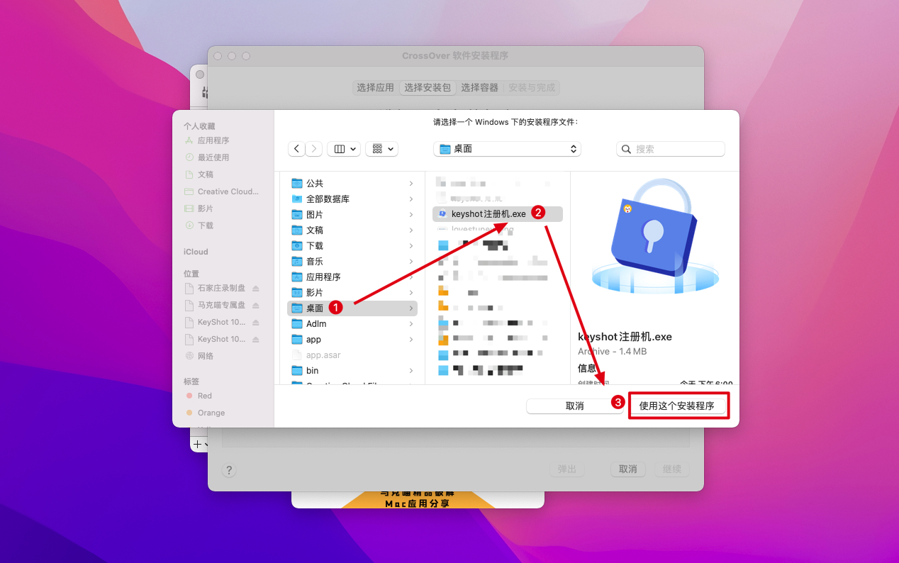 5.返回安装包,我们将安【激活工具】内的keyshot注册机.exe和虚拟机CrossOver拉到桌面上