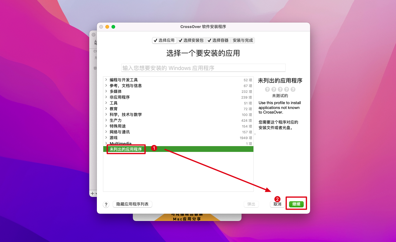 10.随便选择一个应用,比如未列出的应用程序,然后点击继续。