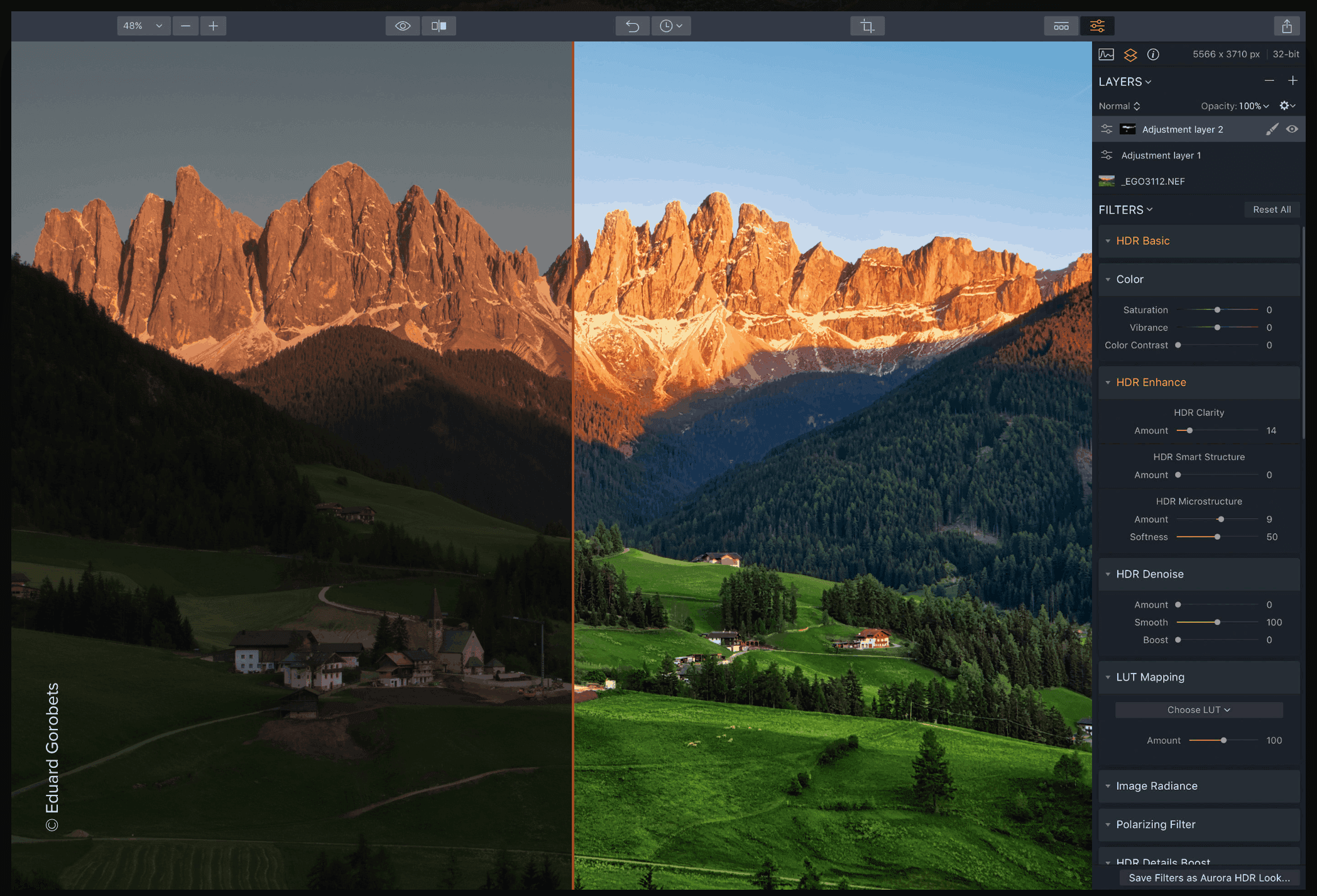 搜集到的Aurora HDR是可以分图层的,支持HDR降噪,曲线,可以制作特殊的“发光”的效果,以及“hdrness”调整,颜色过滤器等功能,支持RAW格式、JPG、TIFF、PSD格式,还有许多其他的功能和工具。该软件不仅易于使用,功能上也非常强大。