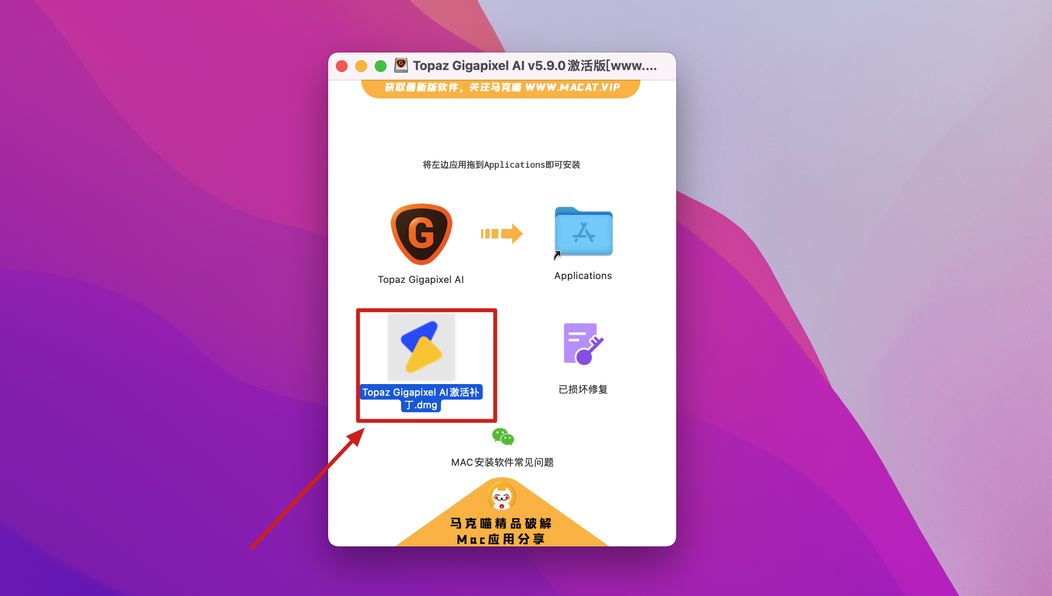 1.拖动Topaz Gigapixel AI到右边的文件夹中进行安装