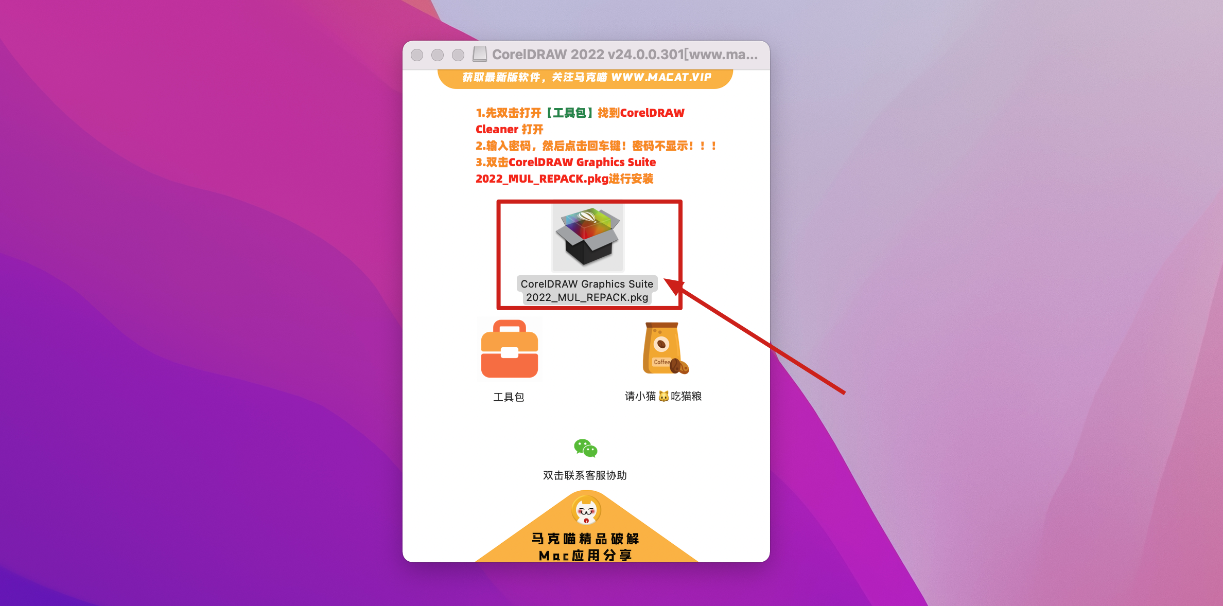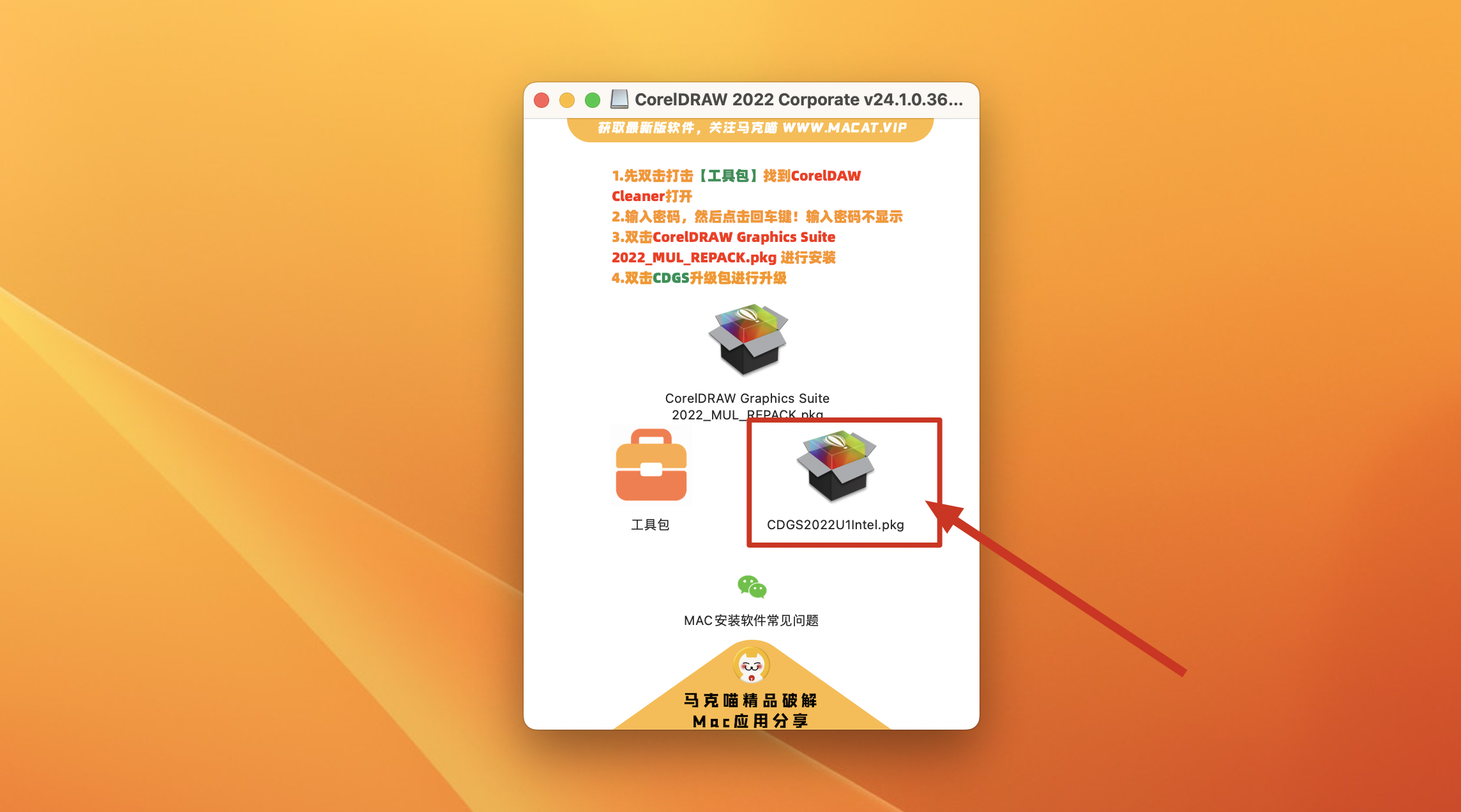 4.双击CorelDRAW Graphics Suite 2022_MUL_REPACK.pkg进行安装