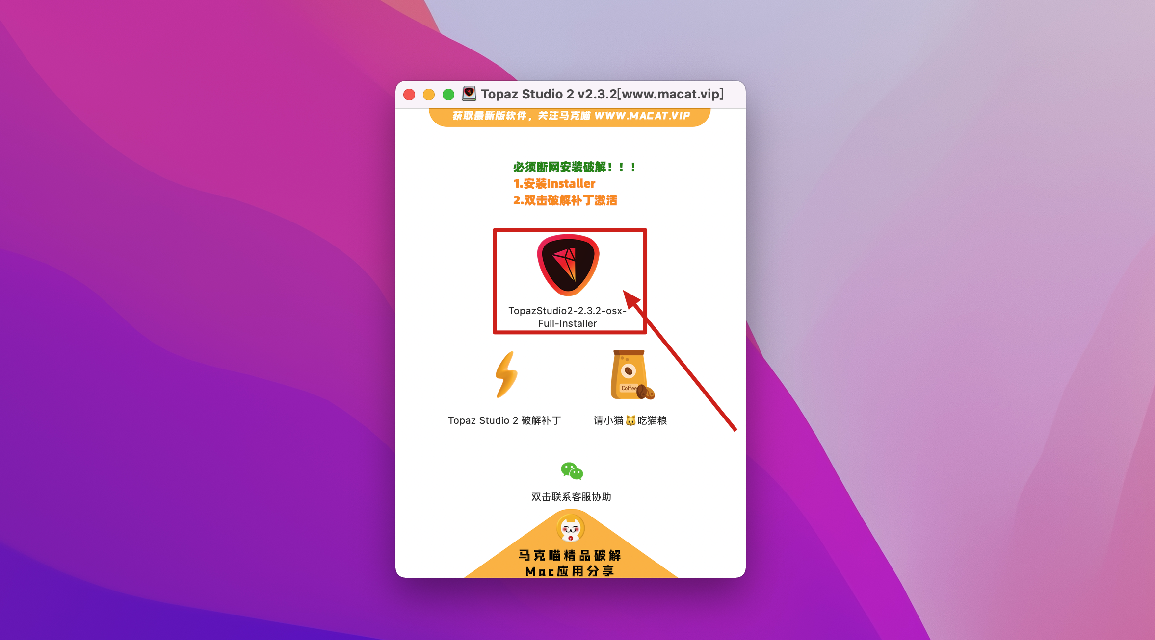 1.软件下载完成后,双击Topaz Studio 2安装包进行安装