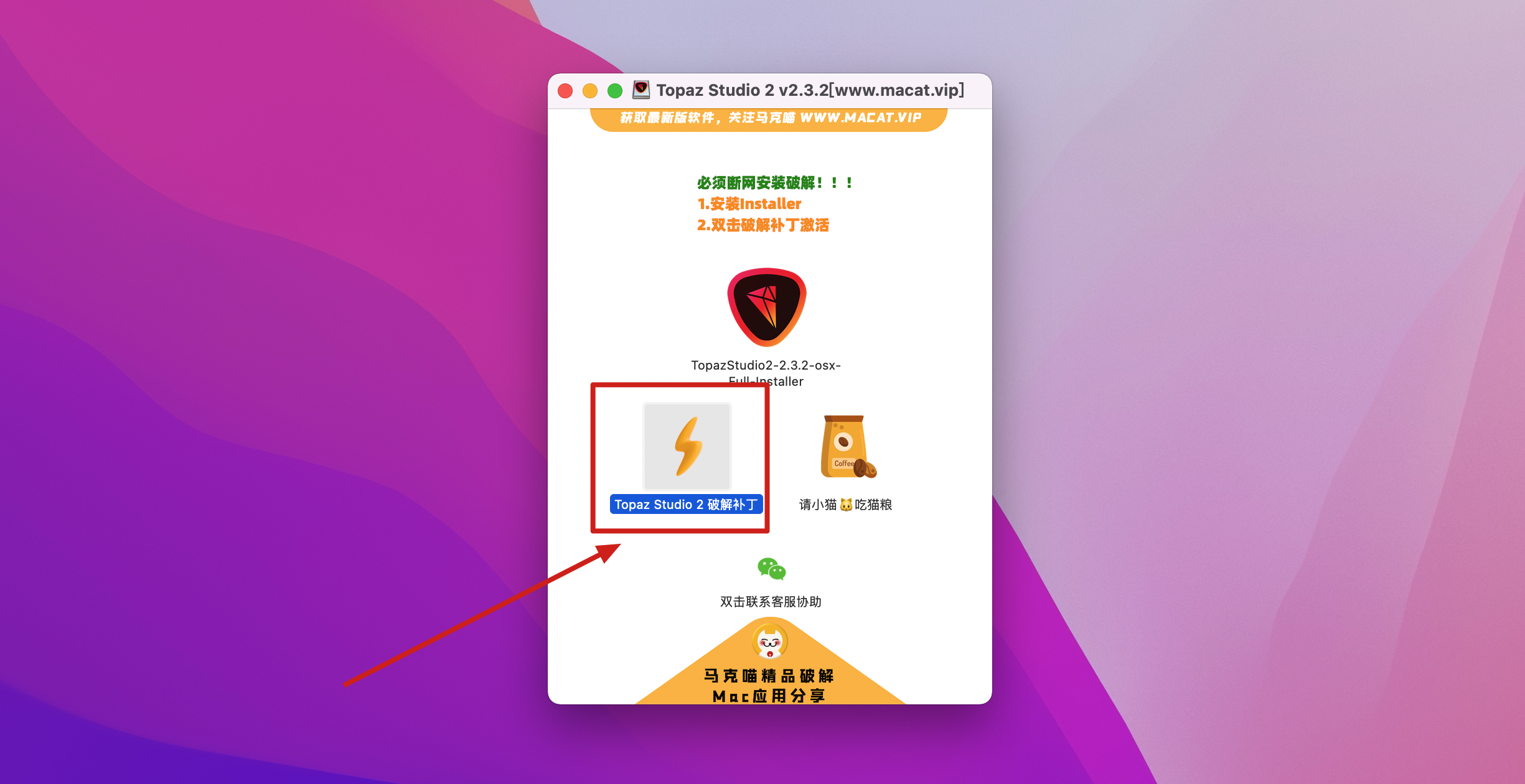 3.返回镜像包,双击打开Topaz Studio破解补丁,根据提示,输入用户登陆密码后(输入密码看不见),静待自动执行即可。