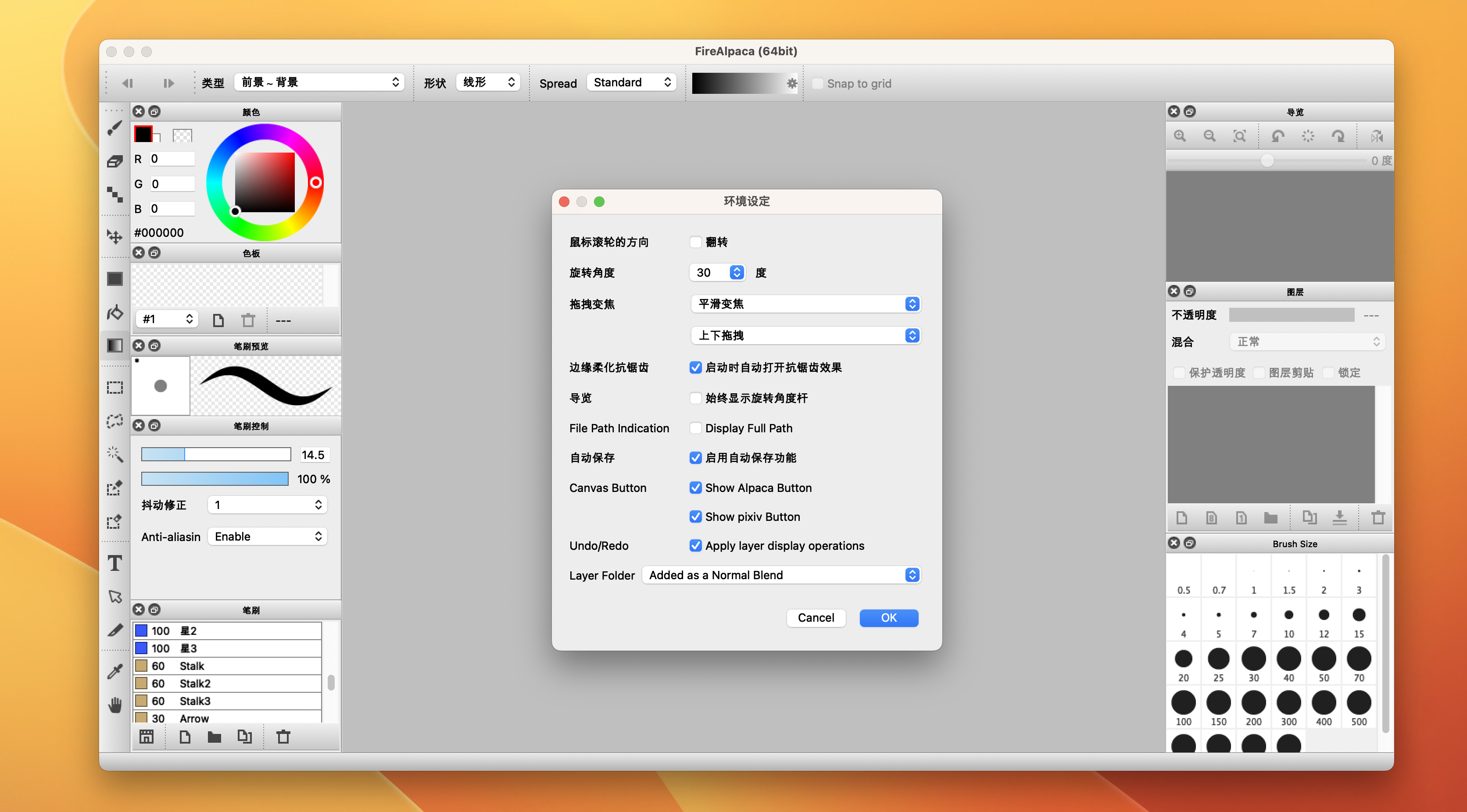 FireAlpaca是款能立即「轻松且简单」使用的绘画软件。我们为了使世界上更多的人都能亲身体验,所以采用免费下载。当然,也不存在迄今令人困扰的麦金塔用户/ 微软用户的使用限制。希望在向人学习此软件前,您能爱用此软件到能教导他人程度。