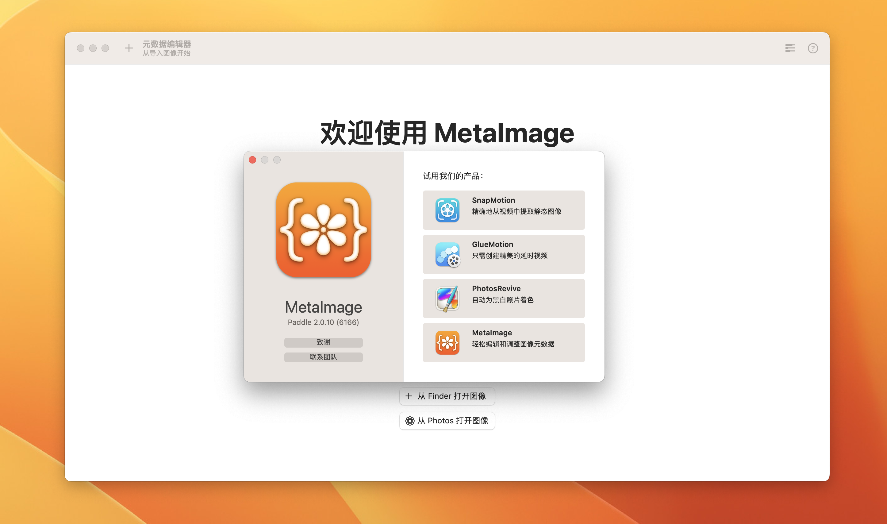 MetaImage是第一个包含Photos扩展的元数据编辑器。通过这种方式,您可以在您喜欢的图像编辑器中直接查看您喜欢的镜头的元数据。