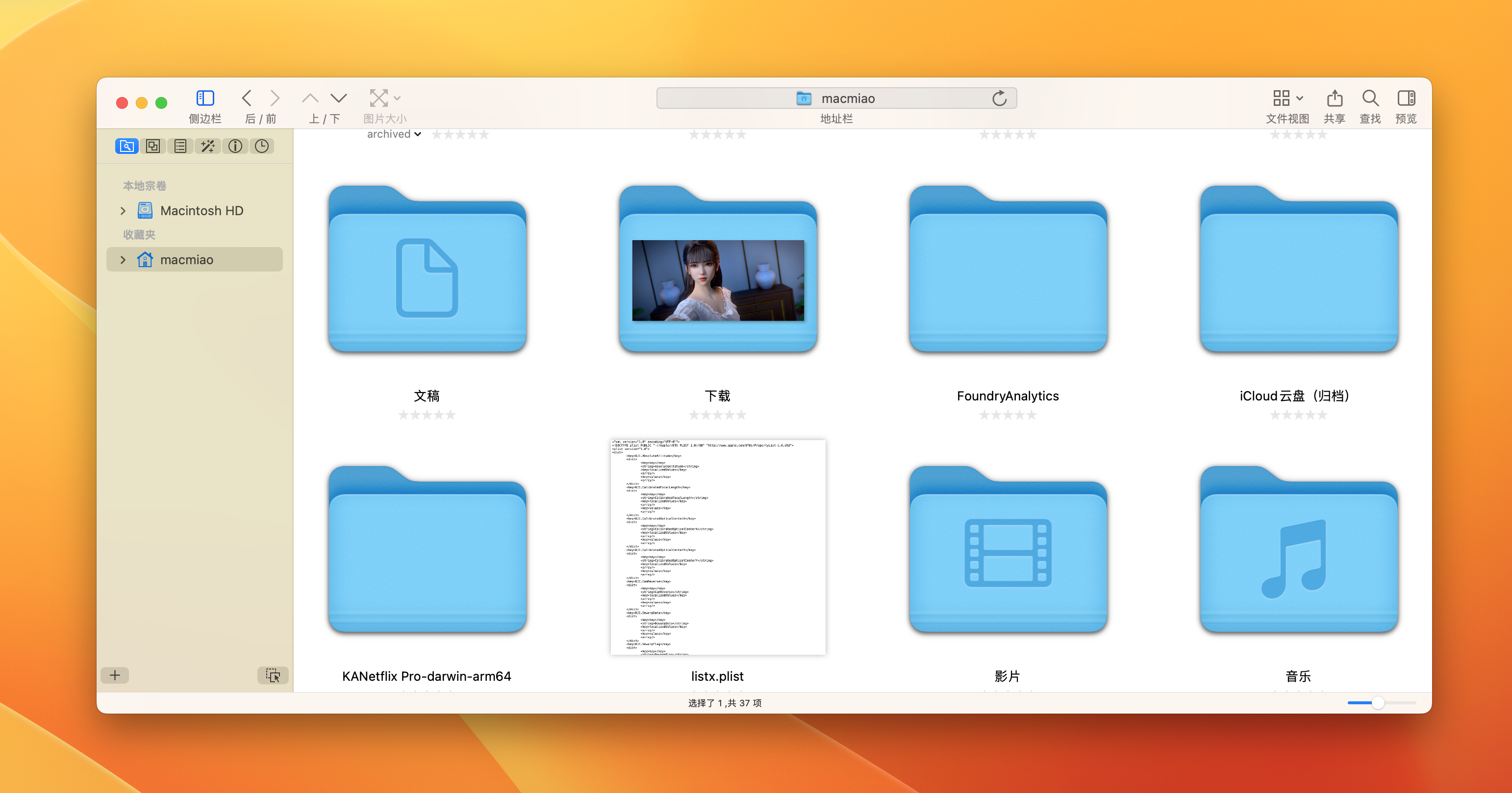 内部文件浏览器将文件显示为列表图标。您可以从文件浏览器打开文件,也可以使用快速查看来查看文件。