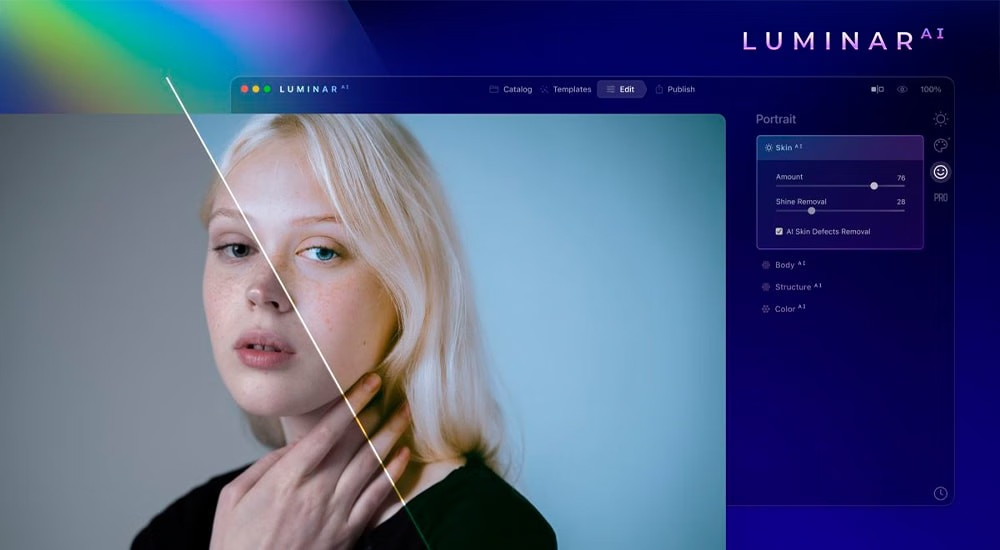 • Luminar AI可以识别照片的内容,并建议最佳的“模板”以加快编辑过程。这些编辑可以应用和完善到完美。