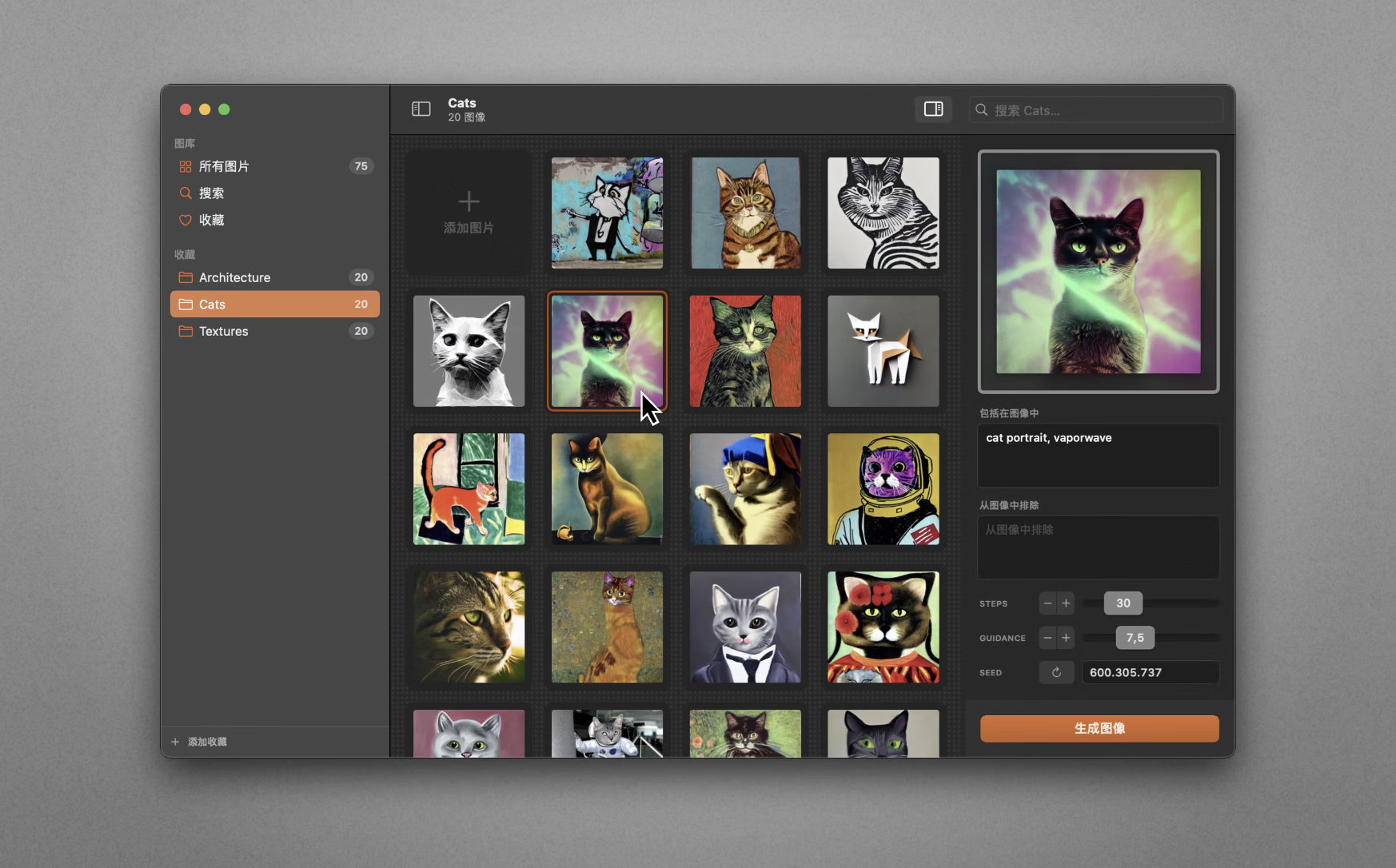 把文字变成图片!AI Photo 是搜集到的一款用户友好的文本到图像生成器应用程序,它可以根据您的图像描述创建照片和艺术作品,所有这些都是离线的。