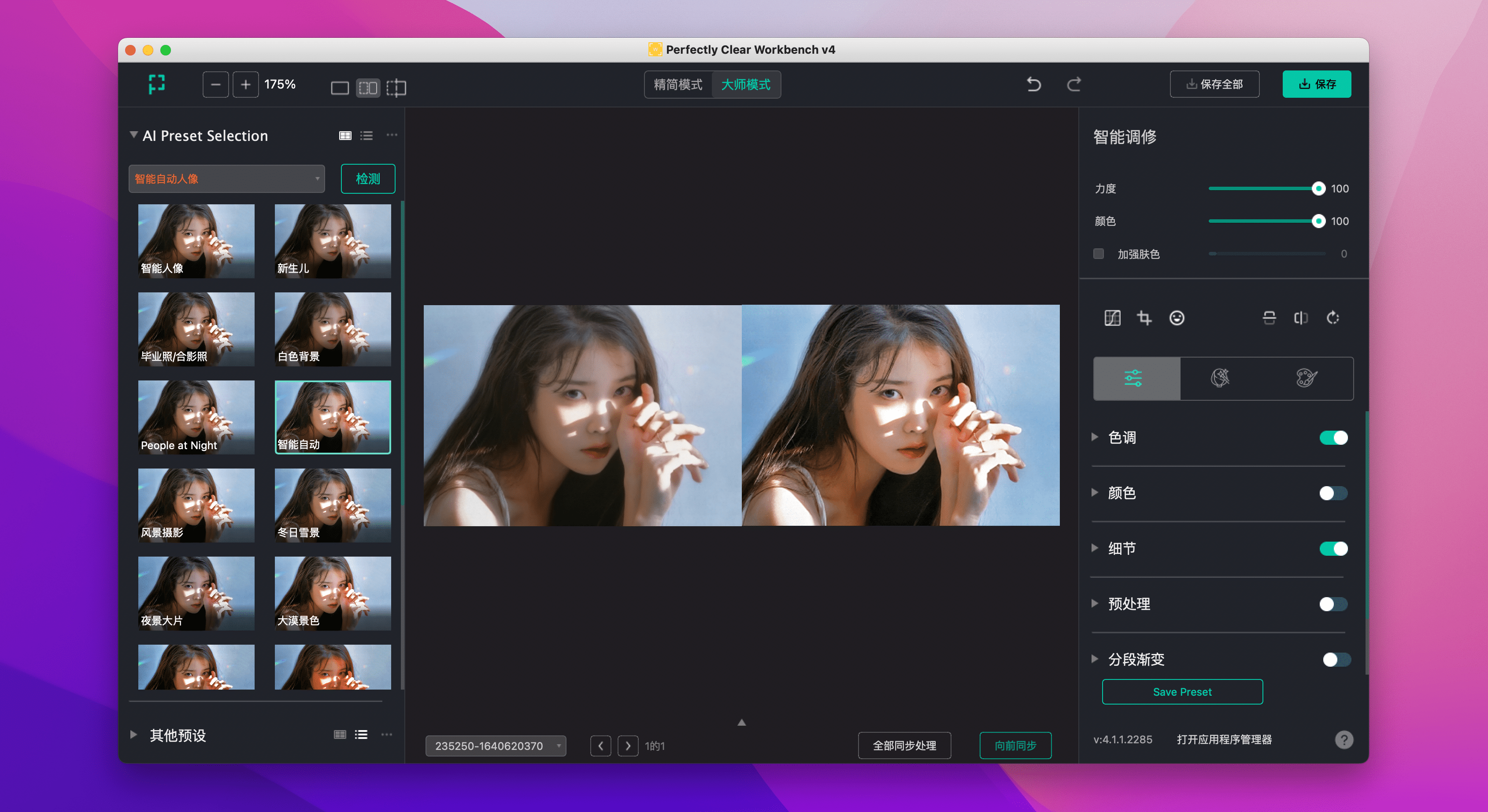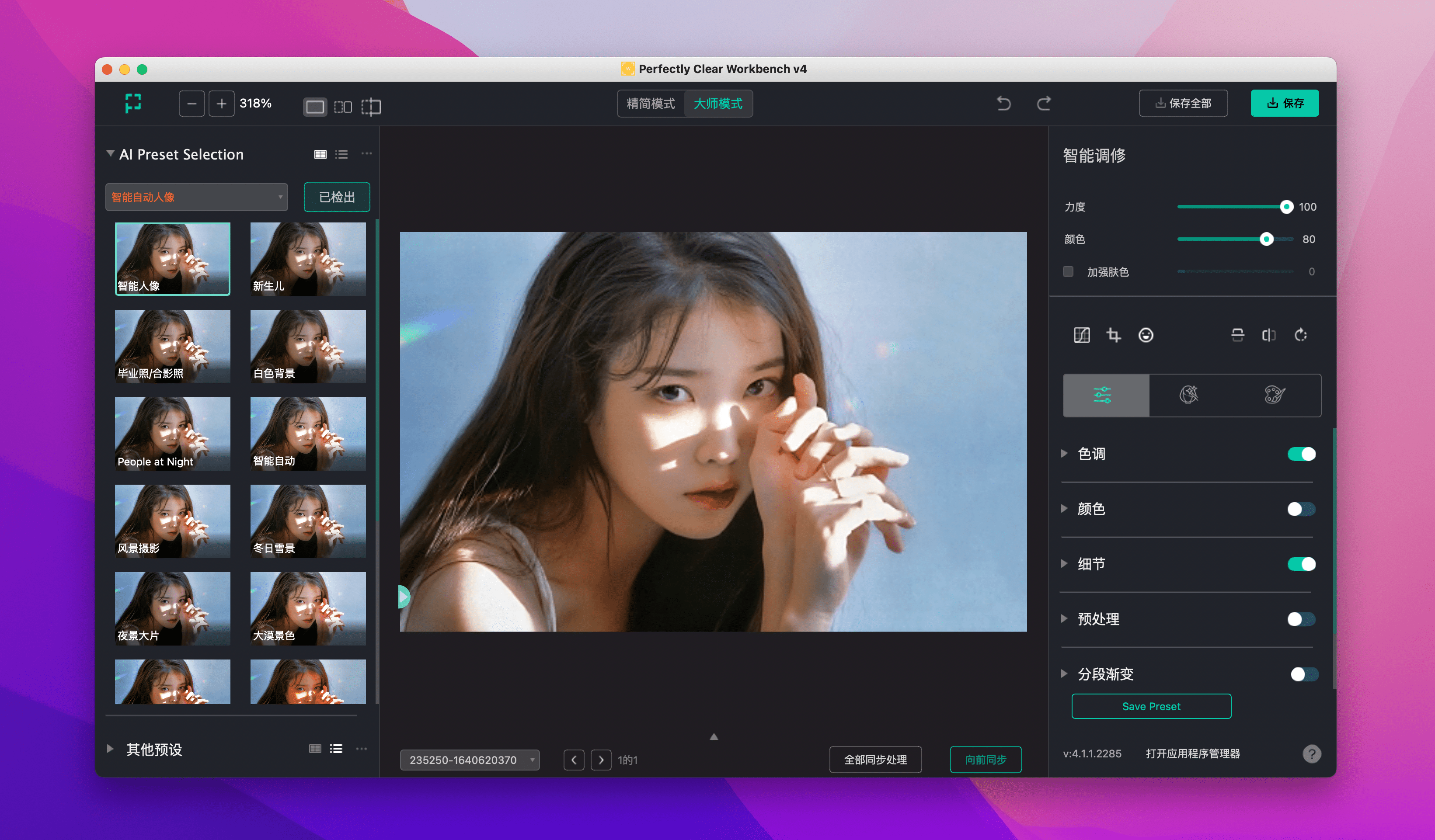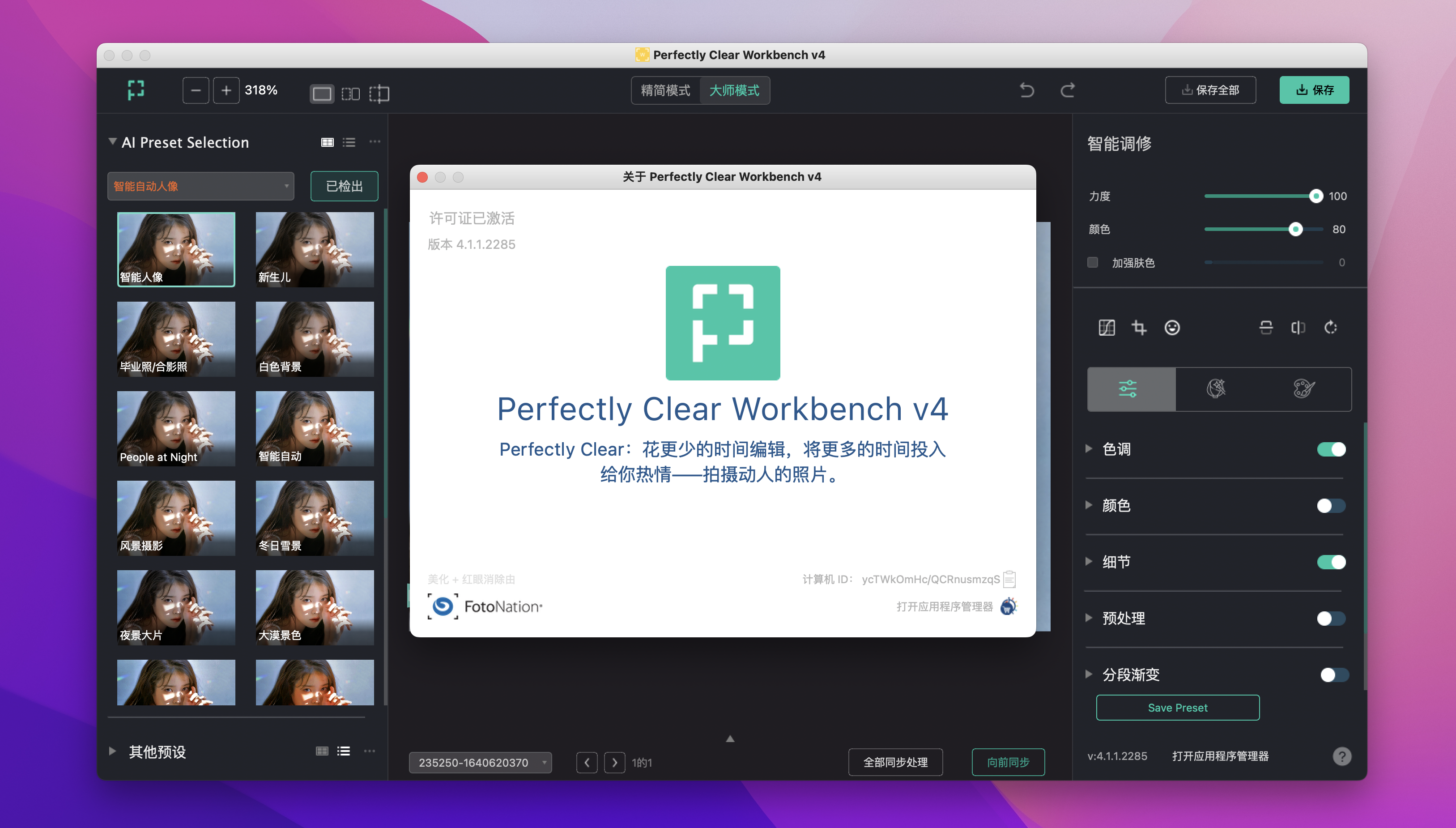 Perfectly Clear Workbench Mac版是一款小巧实用的智能图像清晰度处理软件,Perfectly Clear WorkBench最新版功能强劲,能够帮助用户轻松的修复处理各种损坏的图像,Perfectly Clear WorkBench软件操作简单,可以非常轻松的对图片进行修复和处理,特别是摄像上的一些问题统统都可以解决。