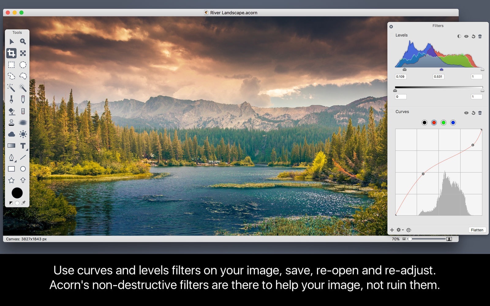 Acorn for mac 是macOS平台上一款比较不错的图像处理软件。如果你不想使用和安装 Mac 上巨大的 Photoshop,Acorn 是不错的替代品。Acorn 用起来都很像神器 Photoshop,是的,它的设计目标就是成为 Photoshop 的轻量替代者,拥有所有 PhotoShop 的基础工具和滤镜效果,支持图层。