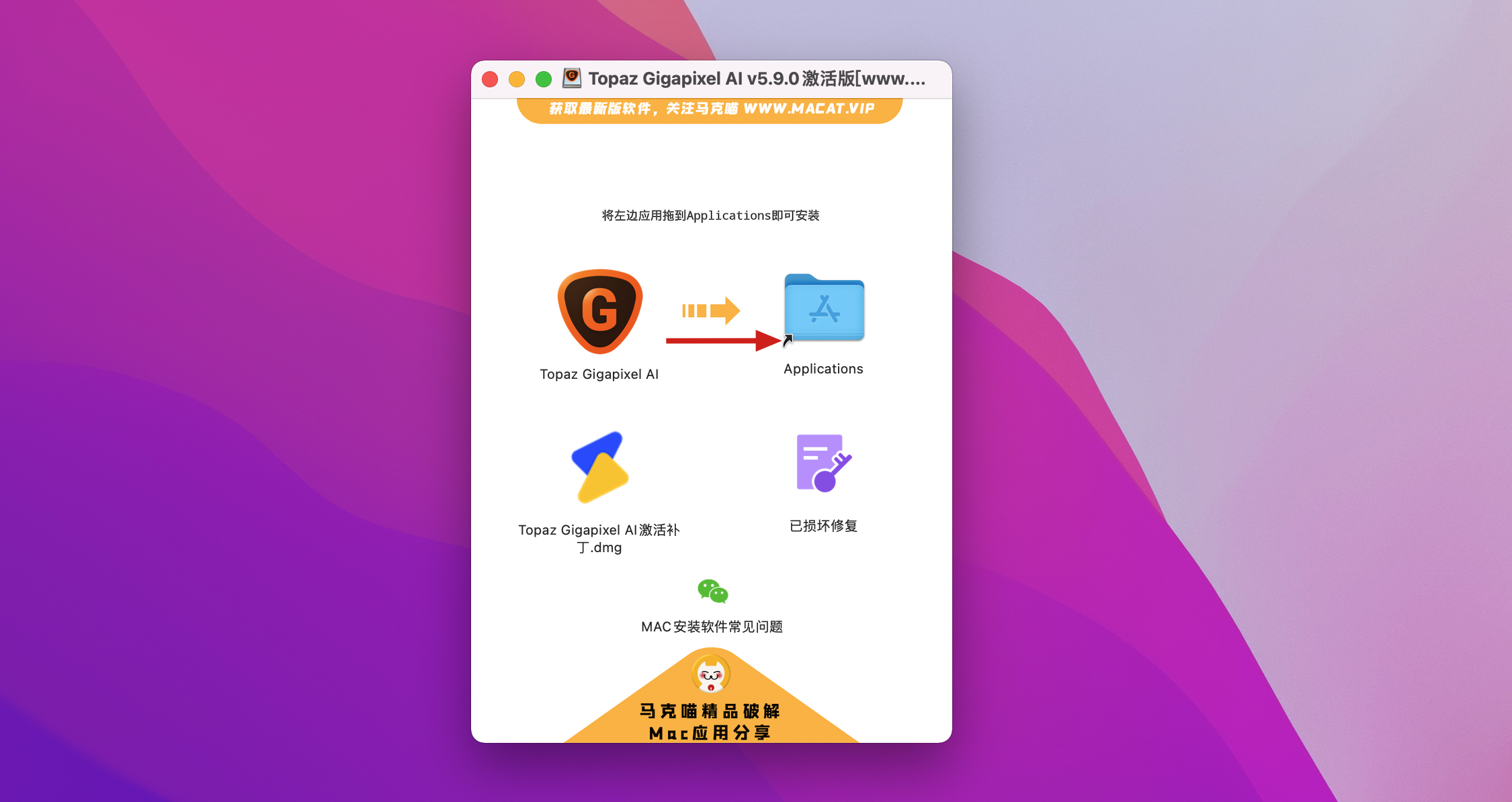 1.拖动Topaz Gigapixel AI到右边的文件夹中进行安装