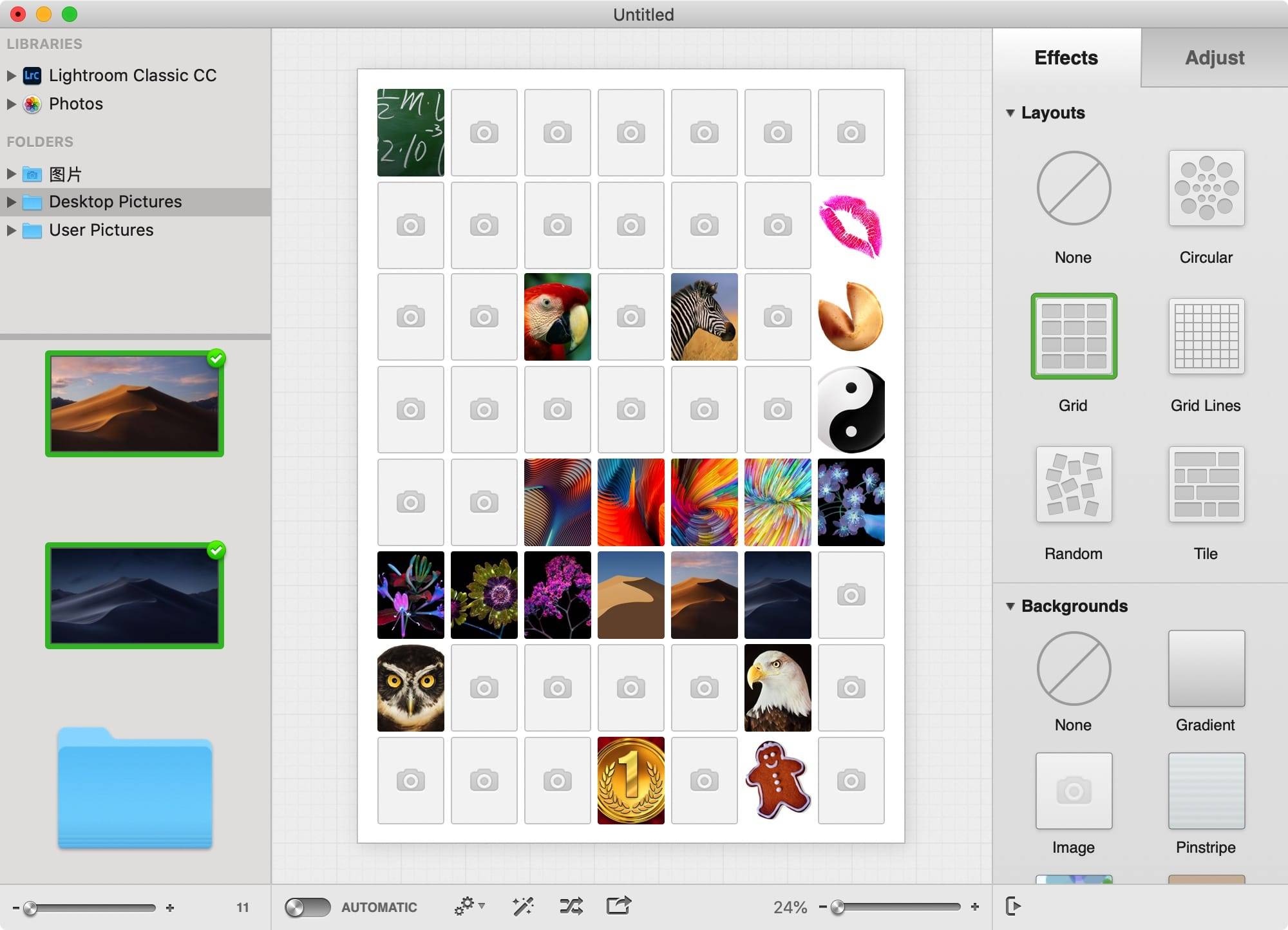根据您的需要使用图像过滤器(黑白,深褐色,锐化等)来裁剪每个单独的图像。改变任何图像的框架或阴影; 选择各种预定义的版本。或显示任何图像的名称,日期,评论等元数据。