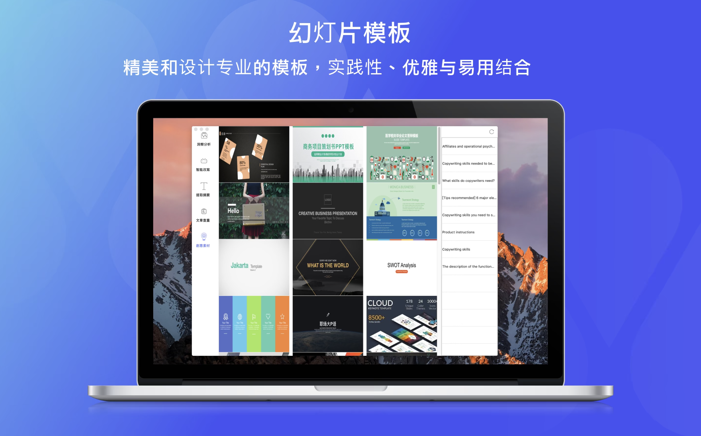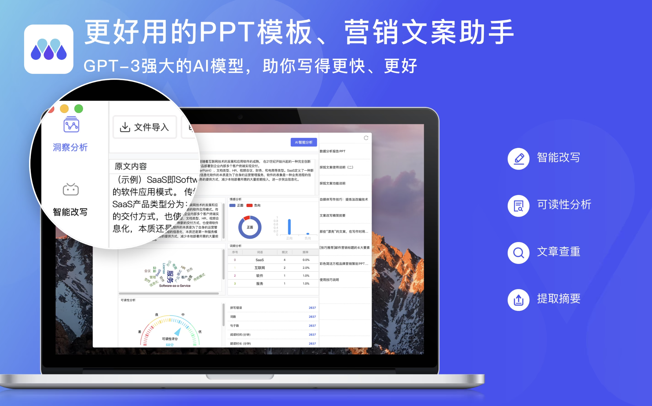 营销文案助理接受过每年价值30亿的广告文案培训。迄今为止,它是国内唯一经过实战的智能文案平台。