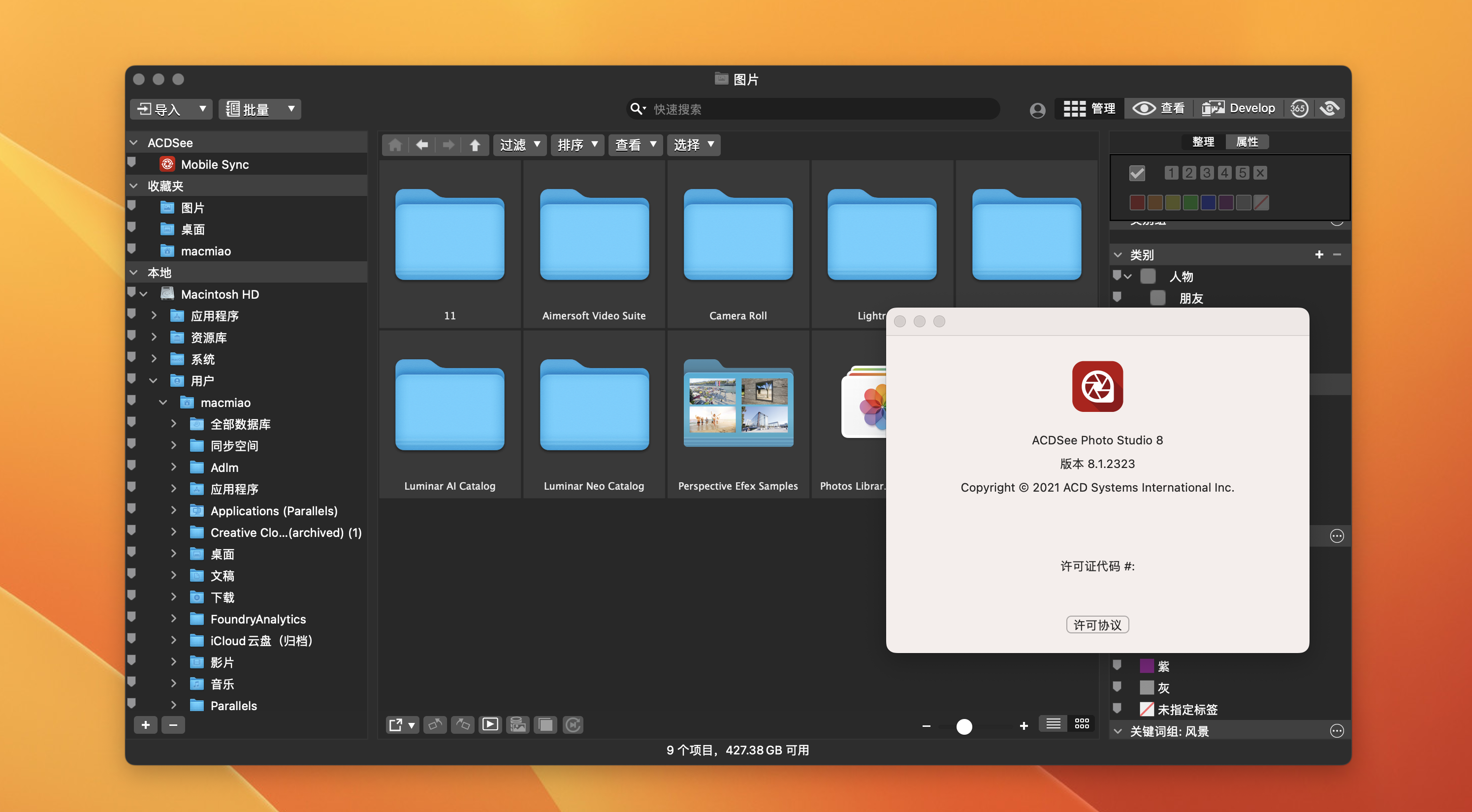 ACDSee Photo Studio for Mac一款数字图象处理软件,通过在图片中添加水印来声明您的工作。您可以自定义边框的颜色,纹理和厚度等,轻松配置ACDSee以与各种其他图像编辑器配合使用,灵活的组织工具可满足任何工作流程,让您拥有闪电般的快速无损调整。