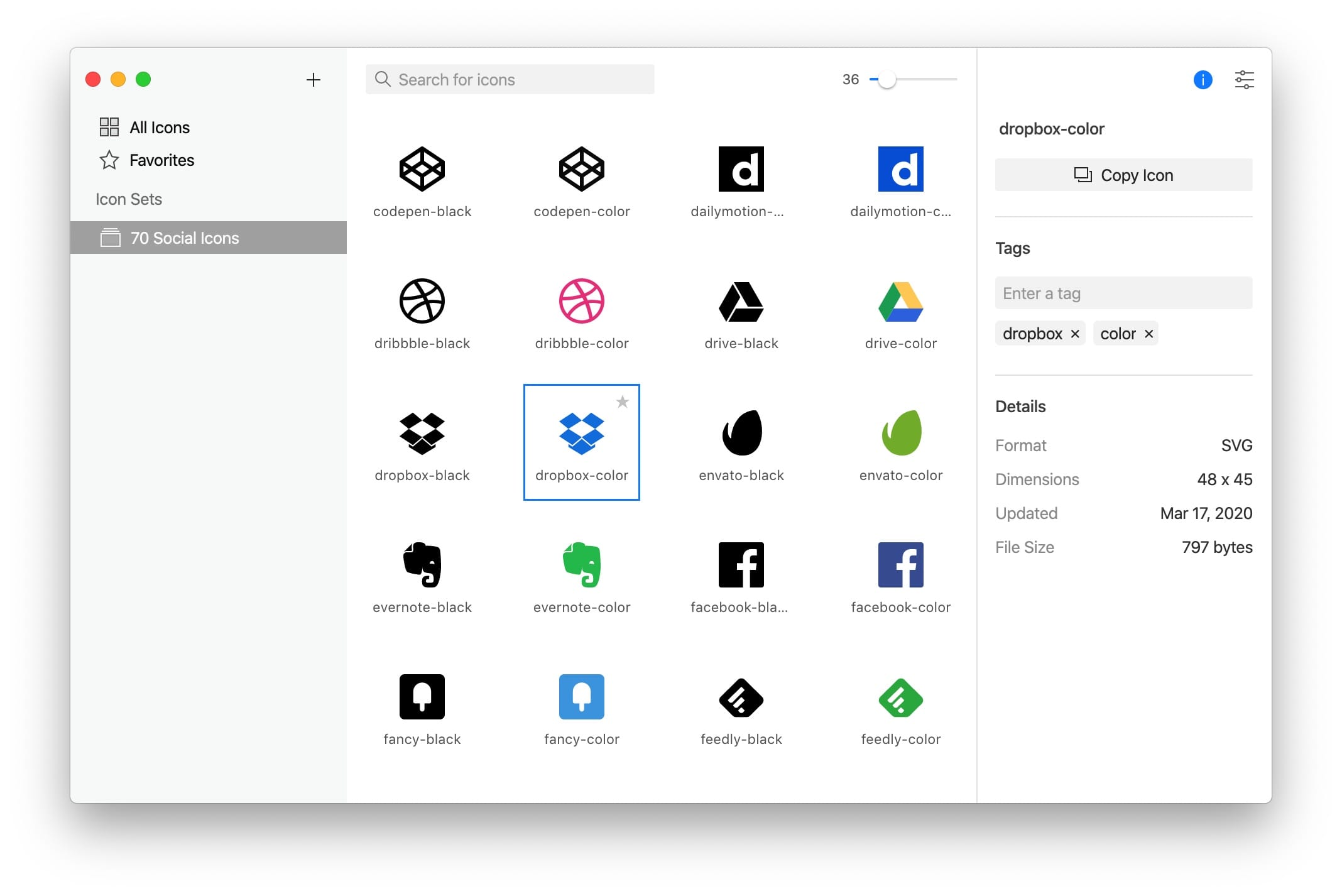 通过在Iconset Manager应用中使用集合或标签进行组织,图标始终唾手可得。