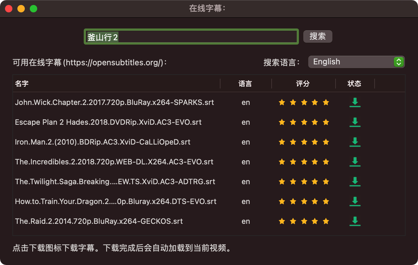 在线搜索并下载字幕