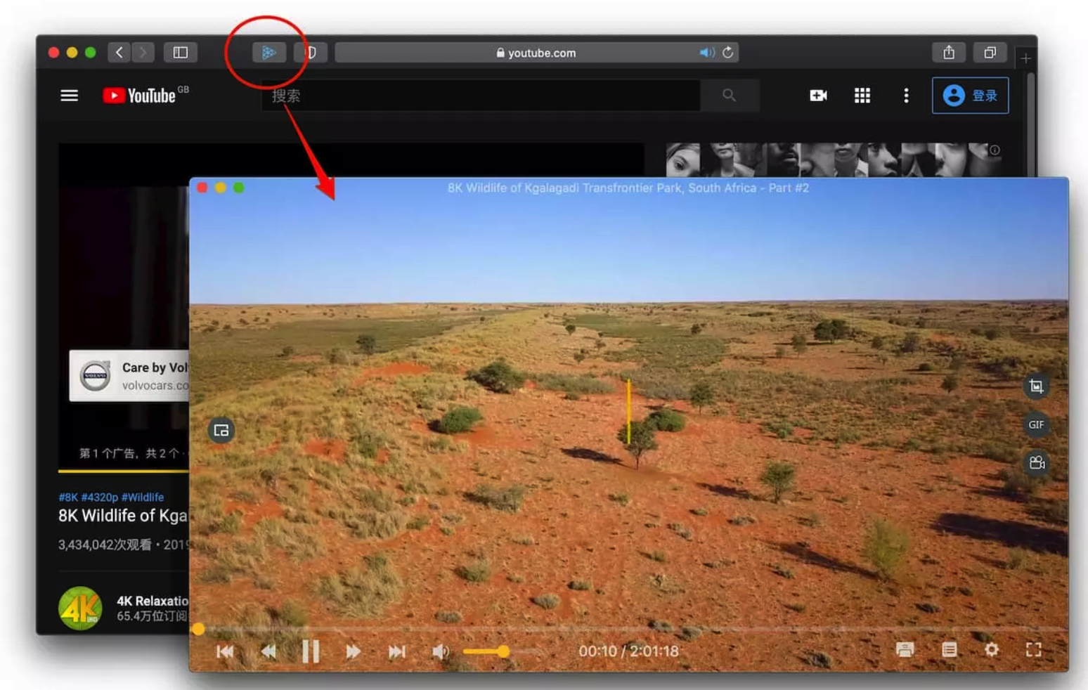 只需要在播放的时候点击地址栏左侧的按钮,就能呼出 OmniPlayer 直接播放,并跳过广告。