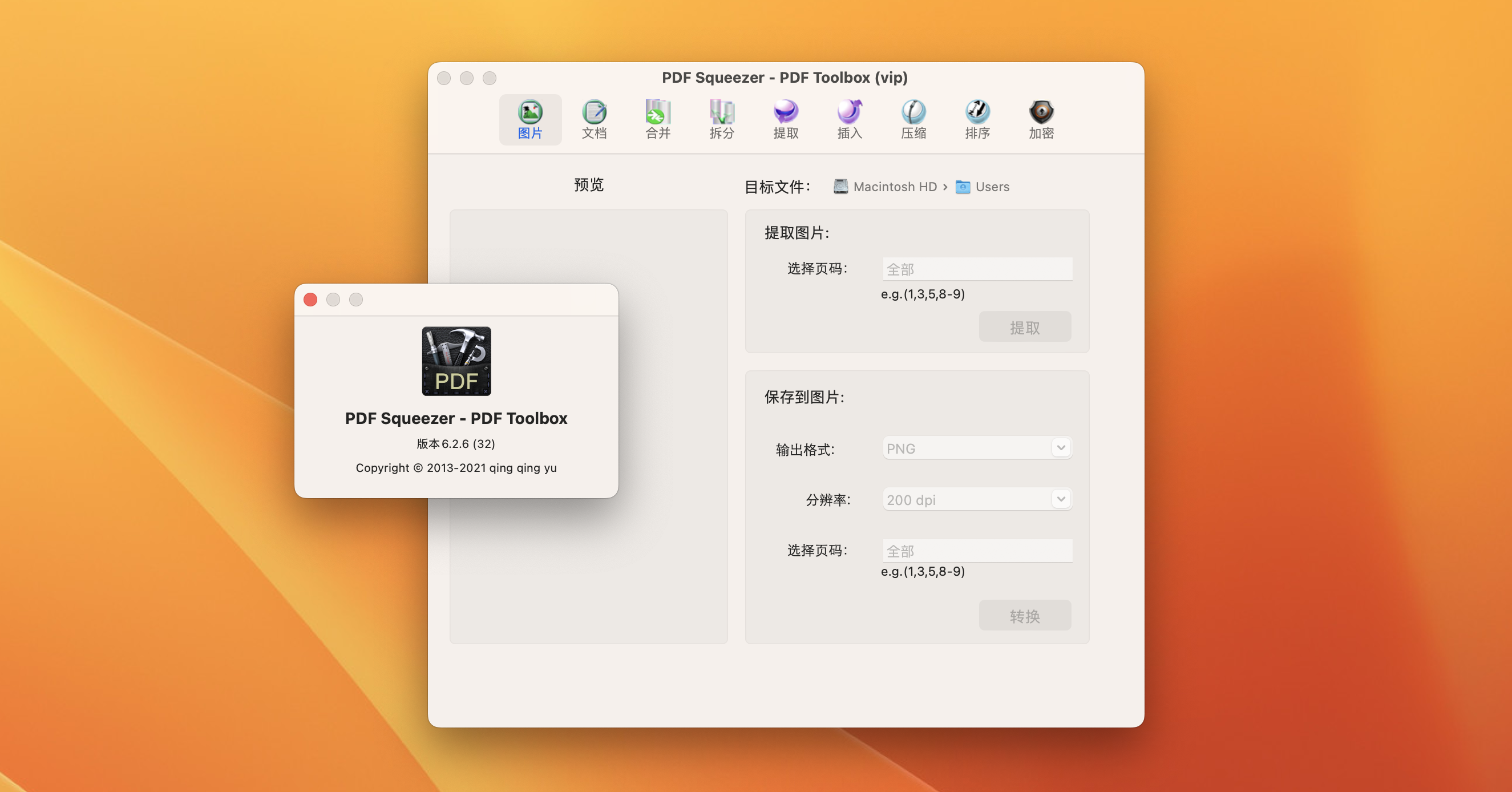 PDF Squeezer – PDF Toolbox 专为操作 PDF 文件而设计,几乎包含您可以想象的所有操作,例如:压缩、合并、拆分、提取、插入、提取图像、转换图像、提取文本、序列、加密等。