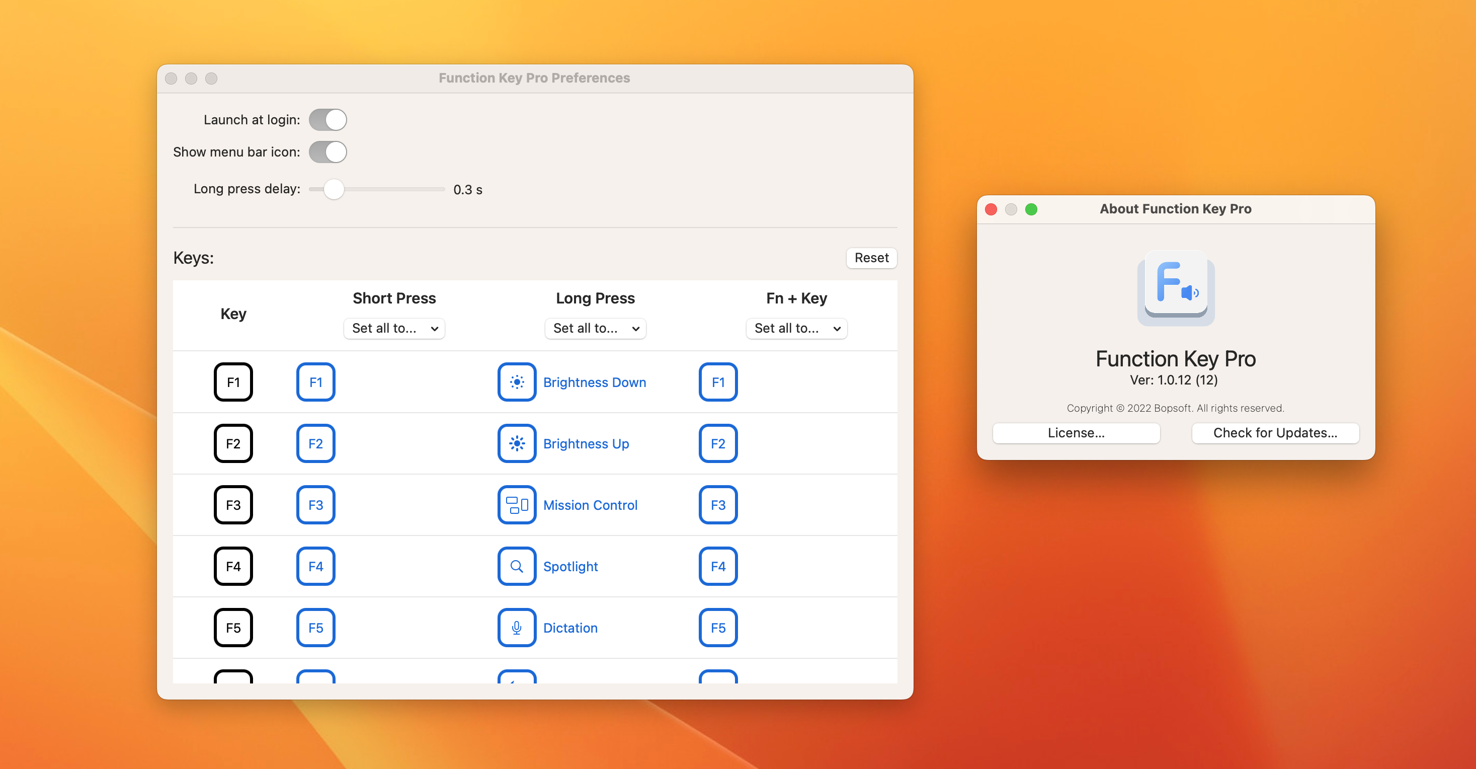 使用Function Key Pro,您可以保留功能键的所有特殊功能,而无需按住 Fn 来触发它们。调整音量或使用 F12 简单的长按或短按。