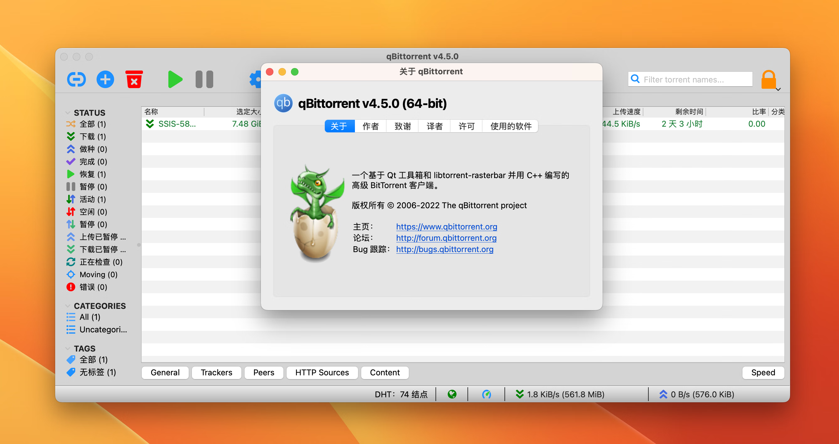 qbittorren for mac一款好用的磁力链接下载工具,qbittorren中文版简单易用,漂亮的外观,功能强大。支持 Windows、Mac 和 Linux,且功能非常强大。qbittorren mac版带给大家,需要的朋友欢迎下载体验。