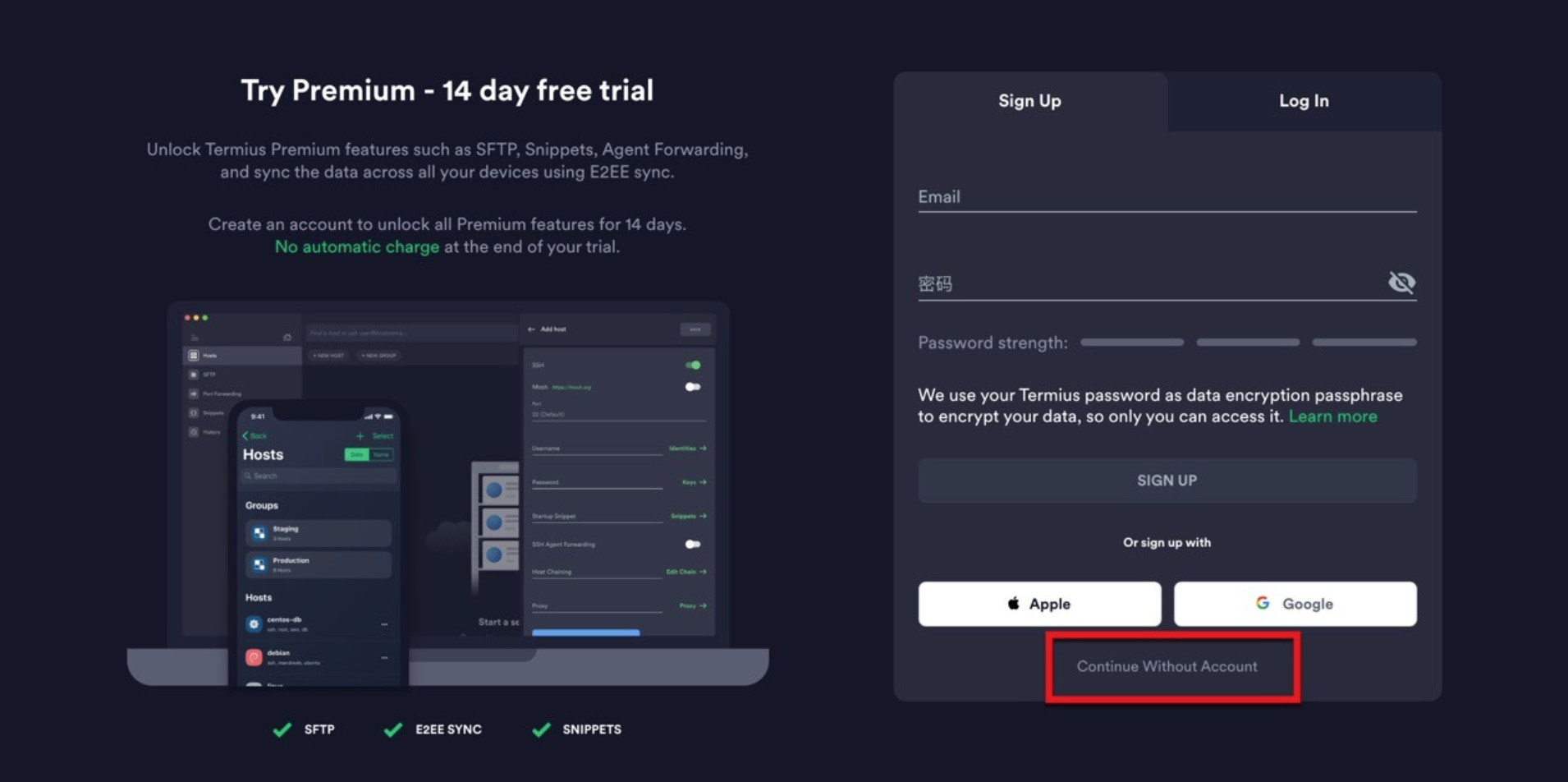 Termius是可在台式机和移动设备上运行的SSH客户端