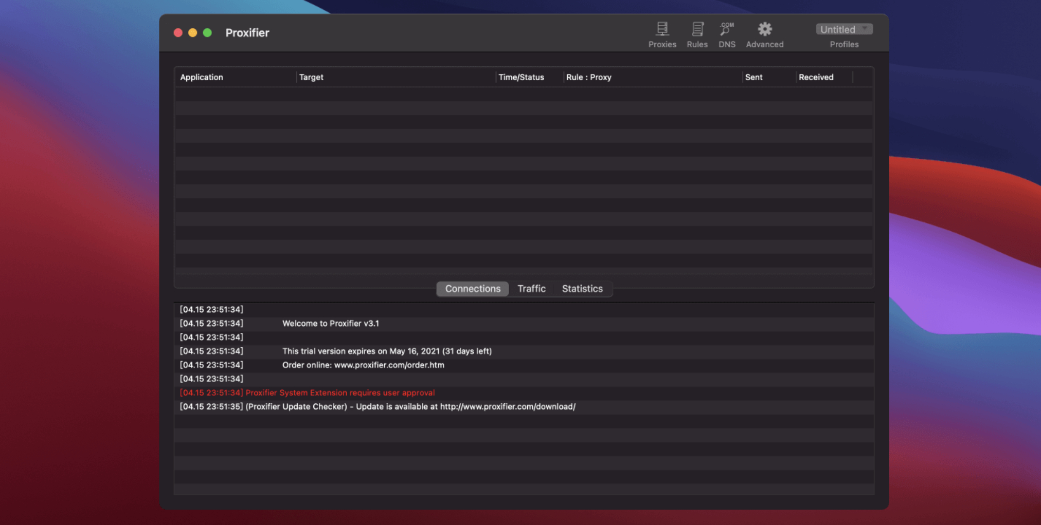 - Proxifier 网络引擎已完全重写。它从内核扩展 (NKE) 迁移到 Catalina 和 Big Sur 中可用的新网络扩展框架。此更改分享以下功能和改进: