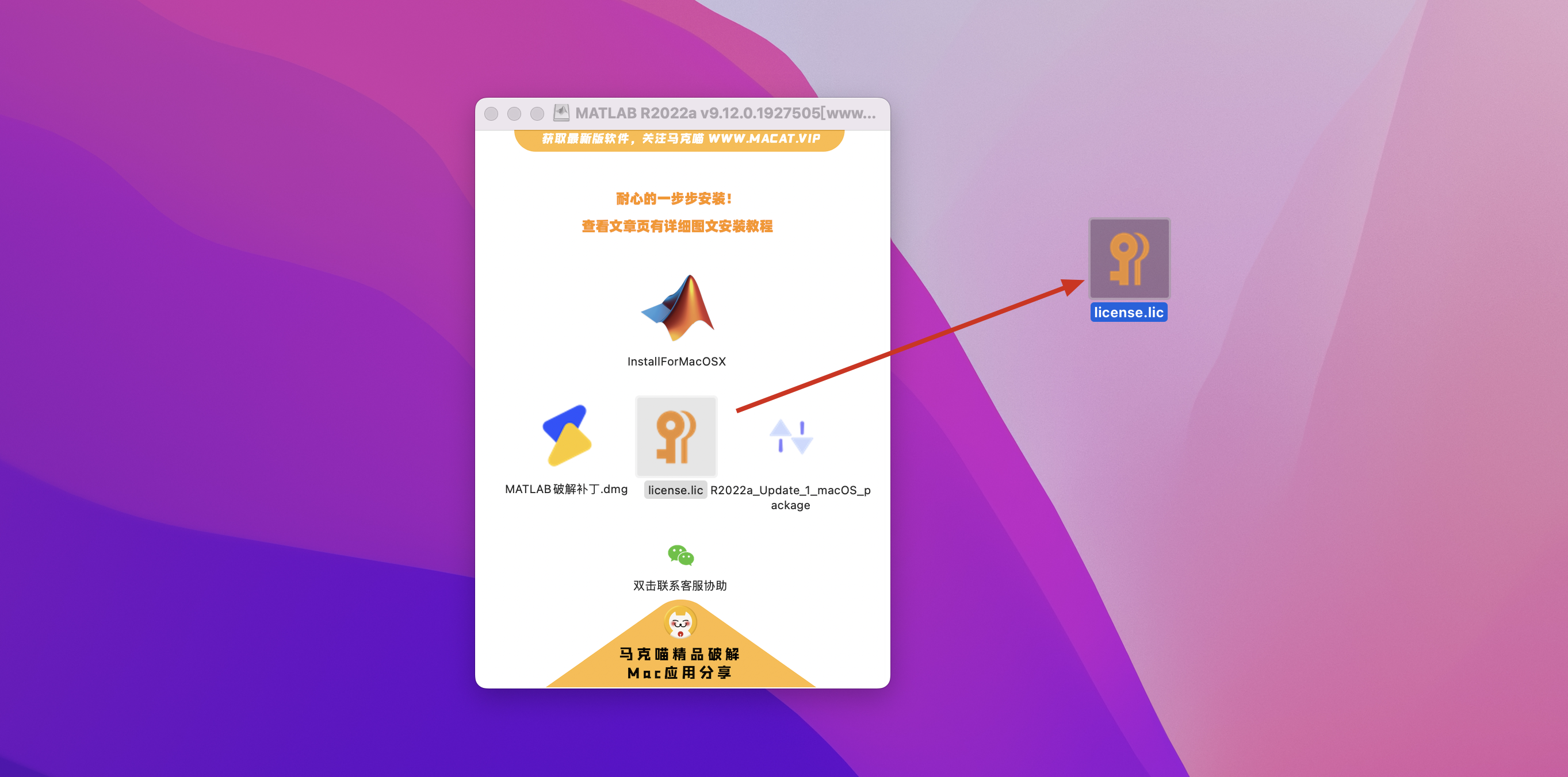 6.需要重新替换破解补丁,返回matlab mac破解版镜像包打开【MATLAB R202x 破解补丁.dmg】