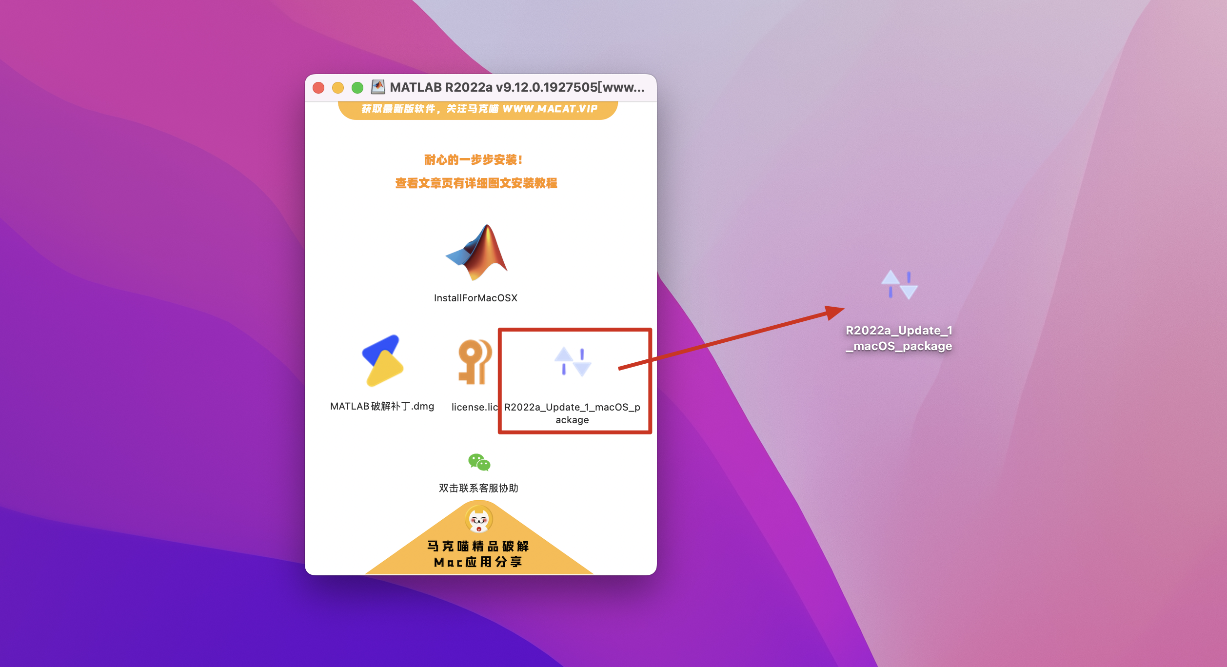 6.需要重新替换破解补丁,返回matlab mac破解版镜像包打开【MATLAB R202x 破解补丁.dmg】